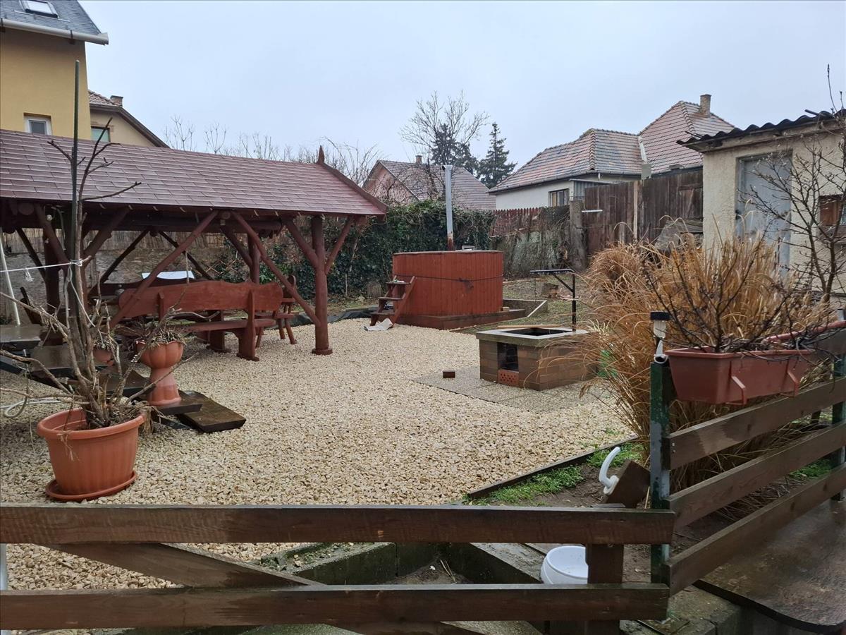 rendezett, kerti sütőnek kialakított hellyel, 4 autónak aszfaltozott beálló biztosított és egy kis tároló is található mely 15nm -es.