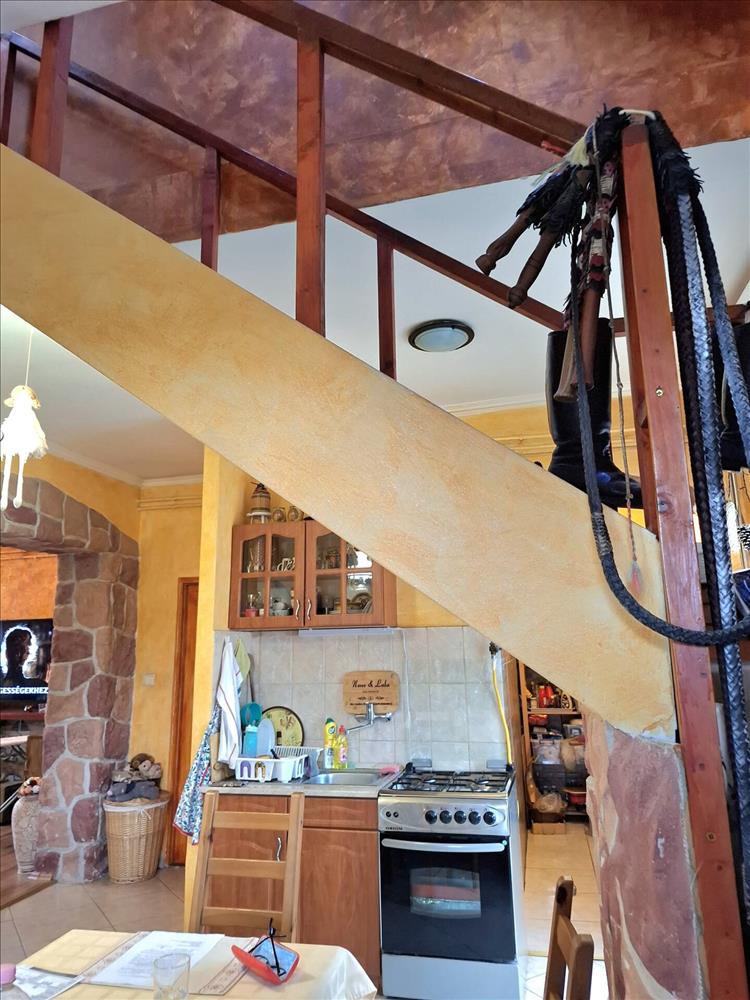 Az emeltre az étkezőből kényelmes lépcső vezet fel, ahol a tetőtérben 2 félszoba lett kialakítva.
