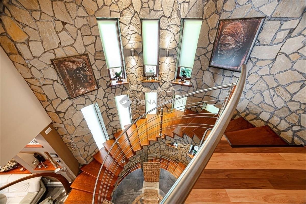 Eladó panorámás családi ház Érdliget egyik legszebb részén. Mesés panorámával, 1207m2 ősfás, gondosan ápolt kerttel rendelkező, kiváló állapotú családi ház eladó Érd Parkváros csendes, zöldövezeti részén. a 2001-ben a kor legmodernebb anyagaival és műszaki megoldásaival épült otthon a mai napig magas műszaki színvonalat képvisel. a nettó ~260m²-es ház három szinten kínál élhető és kényelmes tereket:Földszint:Tágas, napfényes nappaliGépesített, amerikai stílusú konyha étkezővelMaster bedroom saját fürdőszobával és gardróbbalKözvetlen kijárat a hatalmas, teraszos kertkapcsolatra, ahol a természet közelsége mindennapjaink részévé válikEmelet:Az emleti galériára gyönyörő cseresznyefa lépcső vezet fel, innen nyílnak. . . Két nagyméretű hálószoba csodás kertre néző kilátássalFürdőszoba mosdóvalPinceszint:Fűtött garázsTárolóhelyiségekSportolásra, hobbi tevékenységekre alkalmas terekA kert valódi botanikai különlegesség, tele érett növényekkel és árnyas fákkal ideális pihenőhely a nyüzsgő hétköznapok után. a több gépkocsi beállására is lehetőséget nyújtó udvar további kényelmet biztosít. Műszaki tartalom:- gáz cirkó- padló fűtés- szegély fűtés- 2 rétegű fa nyílászárok- cseresznyfa konyhabútor- cseresznyefa belső lépcsők- cseresznyefa belső ajtok- gépesített konyha- kandalló- Svéd Rocky 3d Zsindely- sárga színű külső falfelületek- LB-Knauf vakolatok- szálcsiszolt matt rozsdamentes acélkorlátok- Lindab csatornarendszer- Hasított terméskő burkolatok- sofa dió színű nyílászárok- 5cm vastag Kling garázskapu- melgvíz villanybojler - fűtött 2 állásos garázsEz a ház azoknak szól, akik értékelik a minőséget, a természet közelségét és a nyugalmat mégis gyorsan elérhető távolságban szeretnének maradni a fővárostól. Keressen bizalommal! Hitel.hu - Hasonlítsa össze a bankok lakáshitel ajánlatait