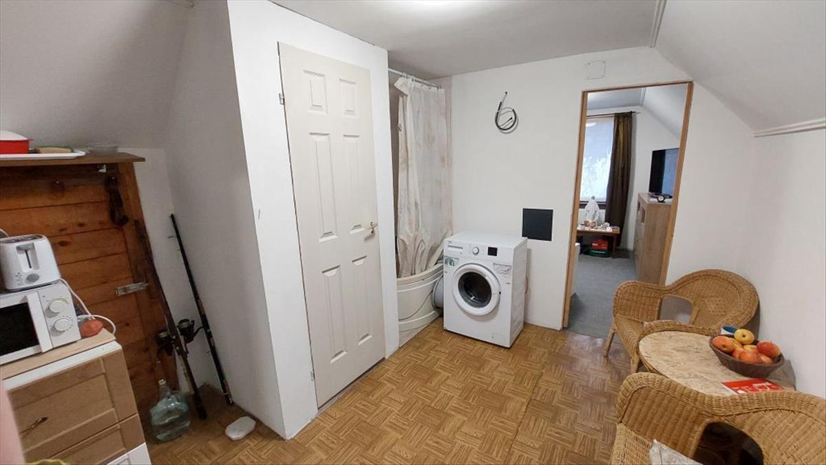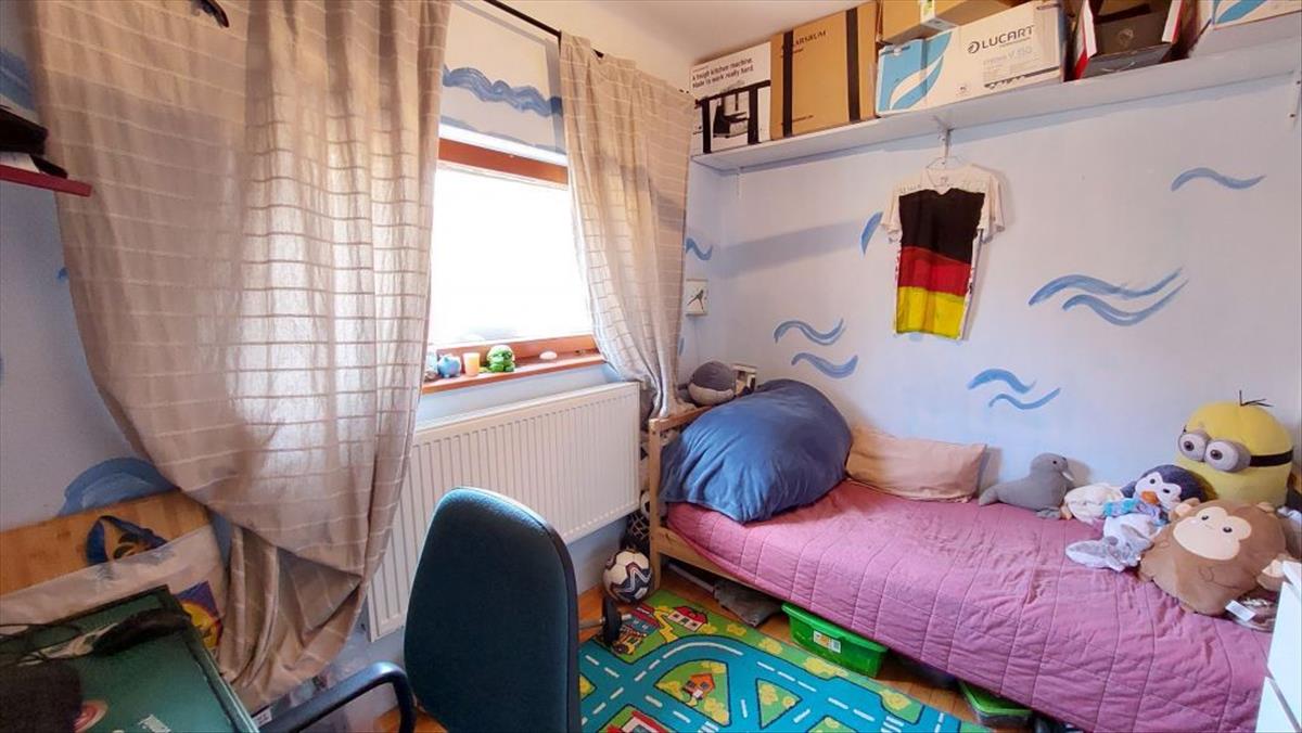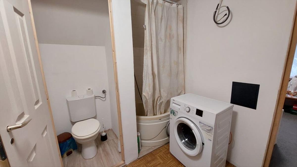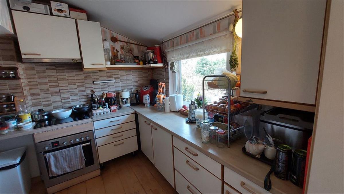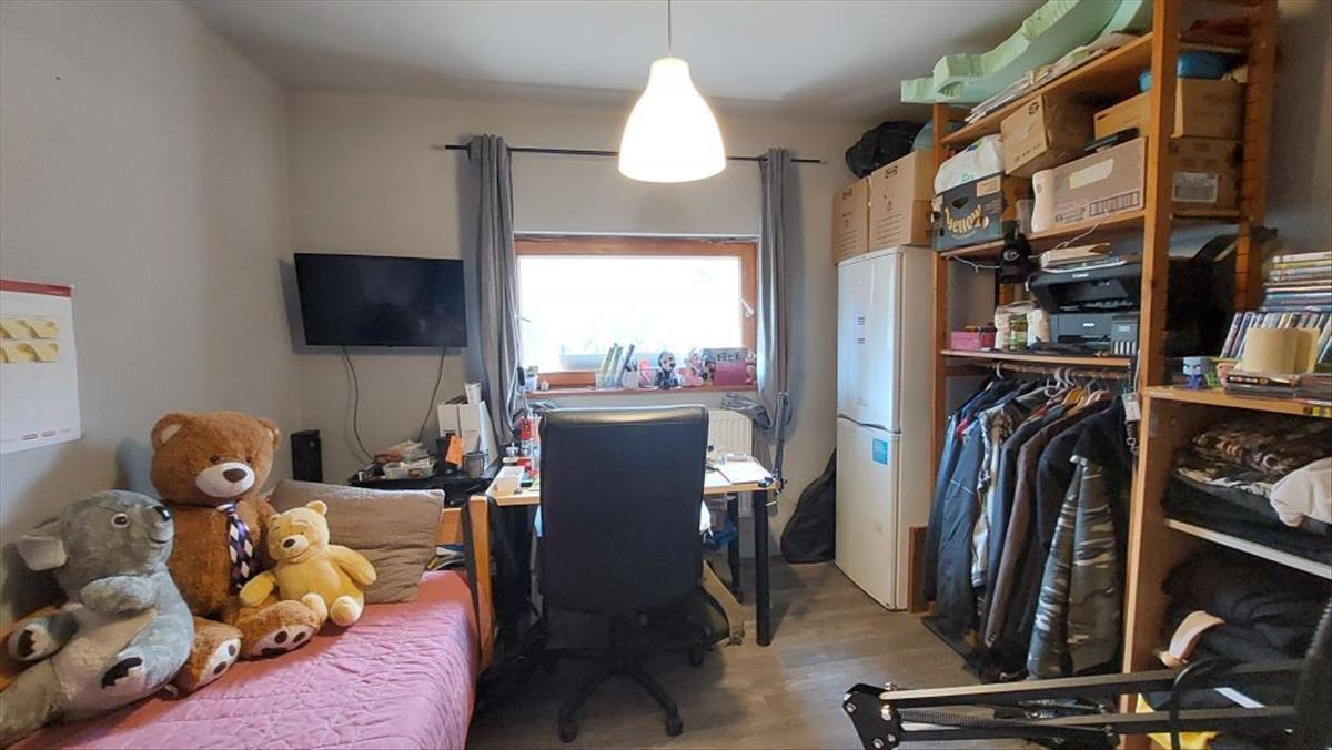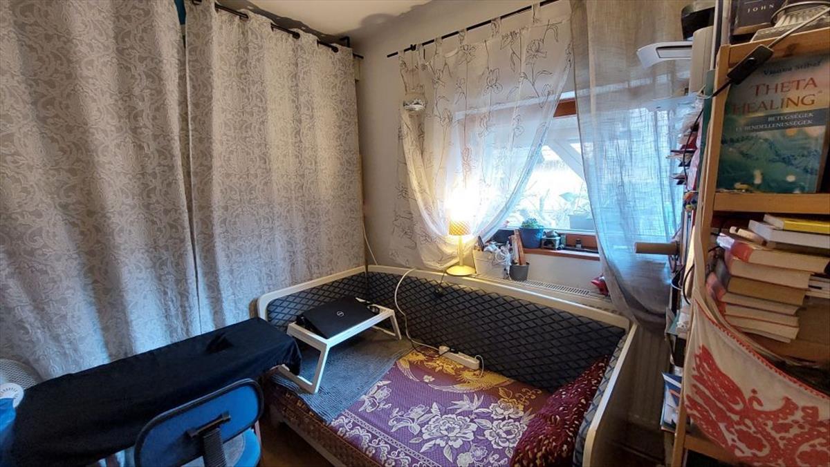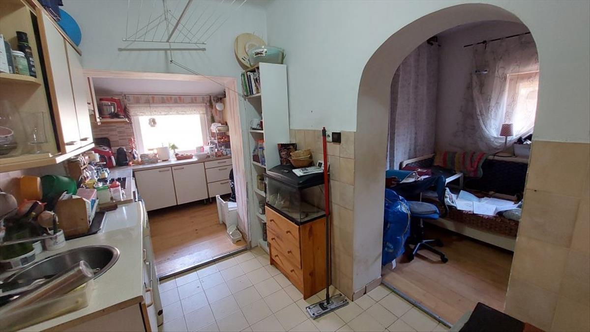 A teraszt beépítették, ott alakították ki a konyhát „l” alakban. a földszinten egy szobából két szobát alakítottak ki, de igény esetén akár újra egybenyitható. Az étkezőt jelenleg szobaként használja a tulajdonos. a fürdő és a wc egy helyiségben található.