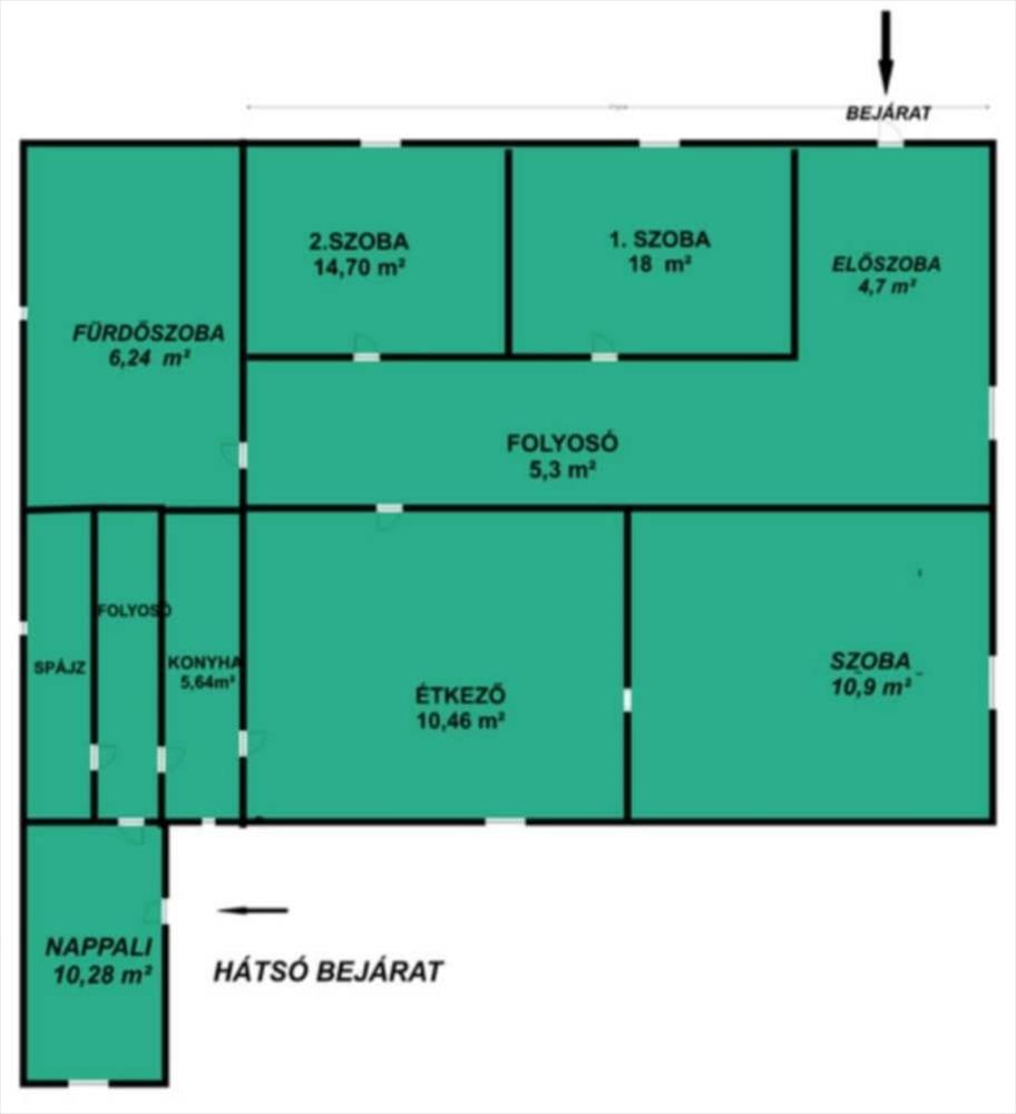 Két bejárat (első és hátsó)