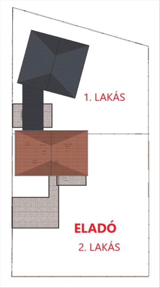 Az épület hátuljában lesz egy kamra, ez lesz hozzáépítve a mögötte lévő ház garázsához, a 2 ingatlan között kerítés található.