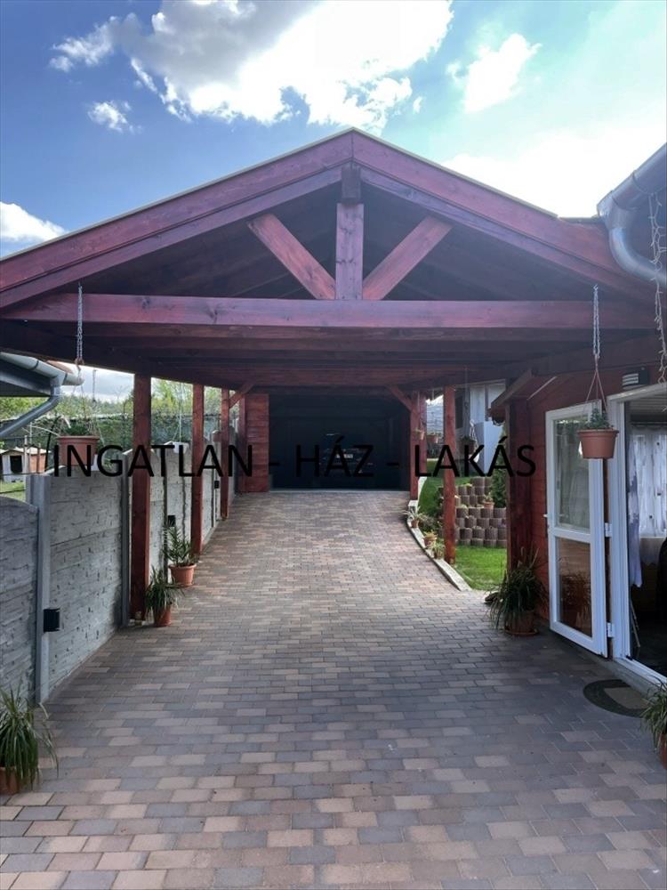 Elektromos kapunyitás a viacoloros autóbeállóhoz. Beton kerítés körben kialakítva az elszeparáltság miatt. Légkondicionált ingatlan.