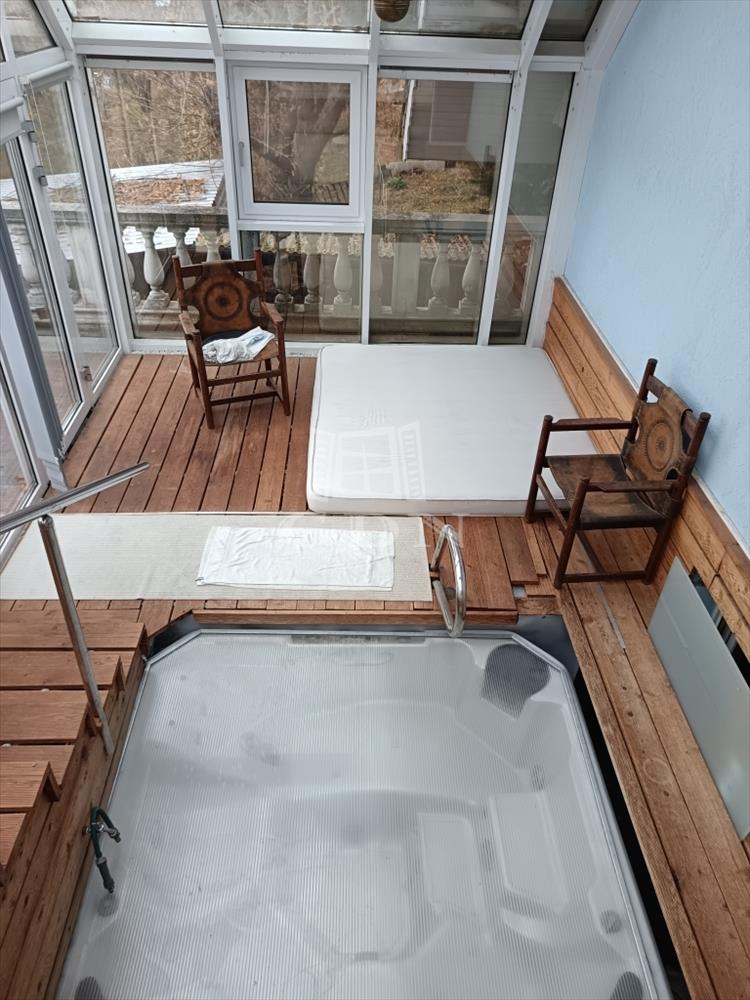 - Földszint: előtér, szoba, második előtér, amelyből egy fürdőszoba és az amerikai konyhás nappali nyílik. a nappaliból ki lehet menni a beépített teraszra, téli kert hangulattal bír, fűthető tér, amelyen egy jakuzzi is elhelyezésre került.