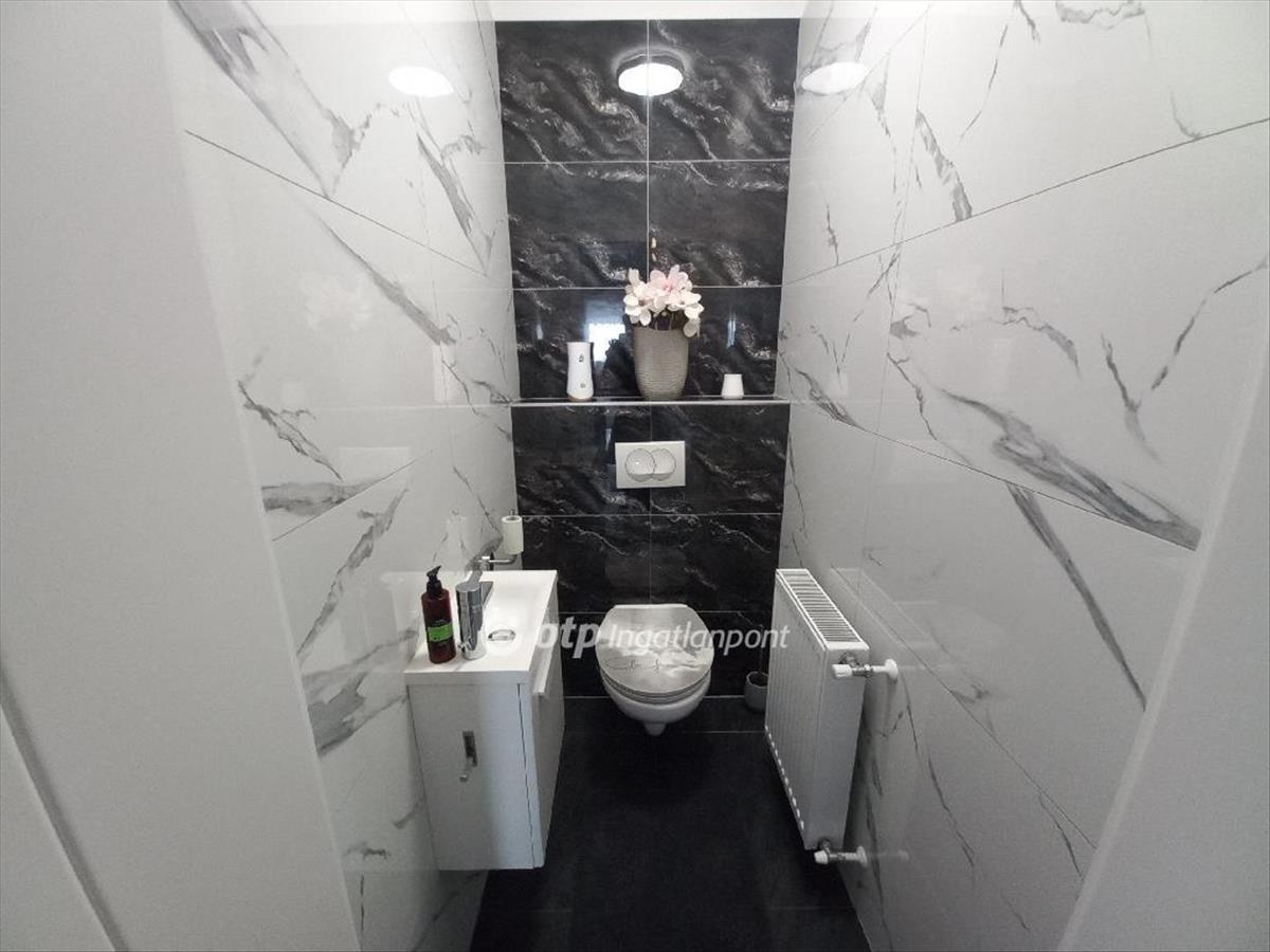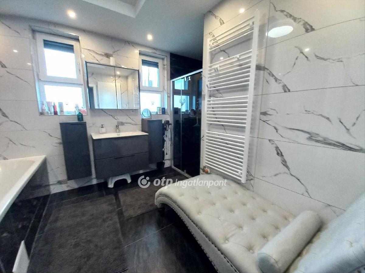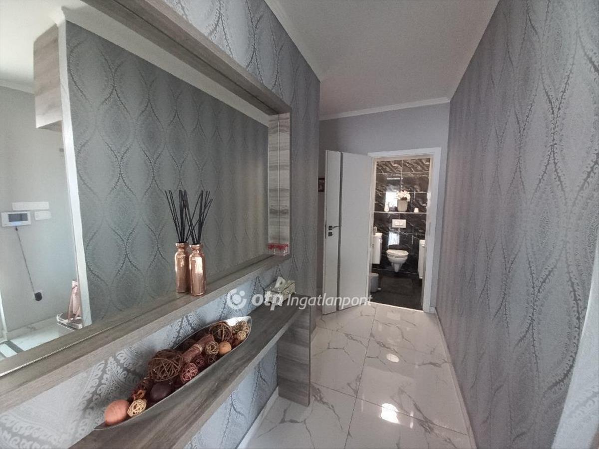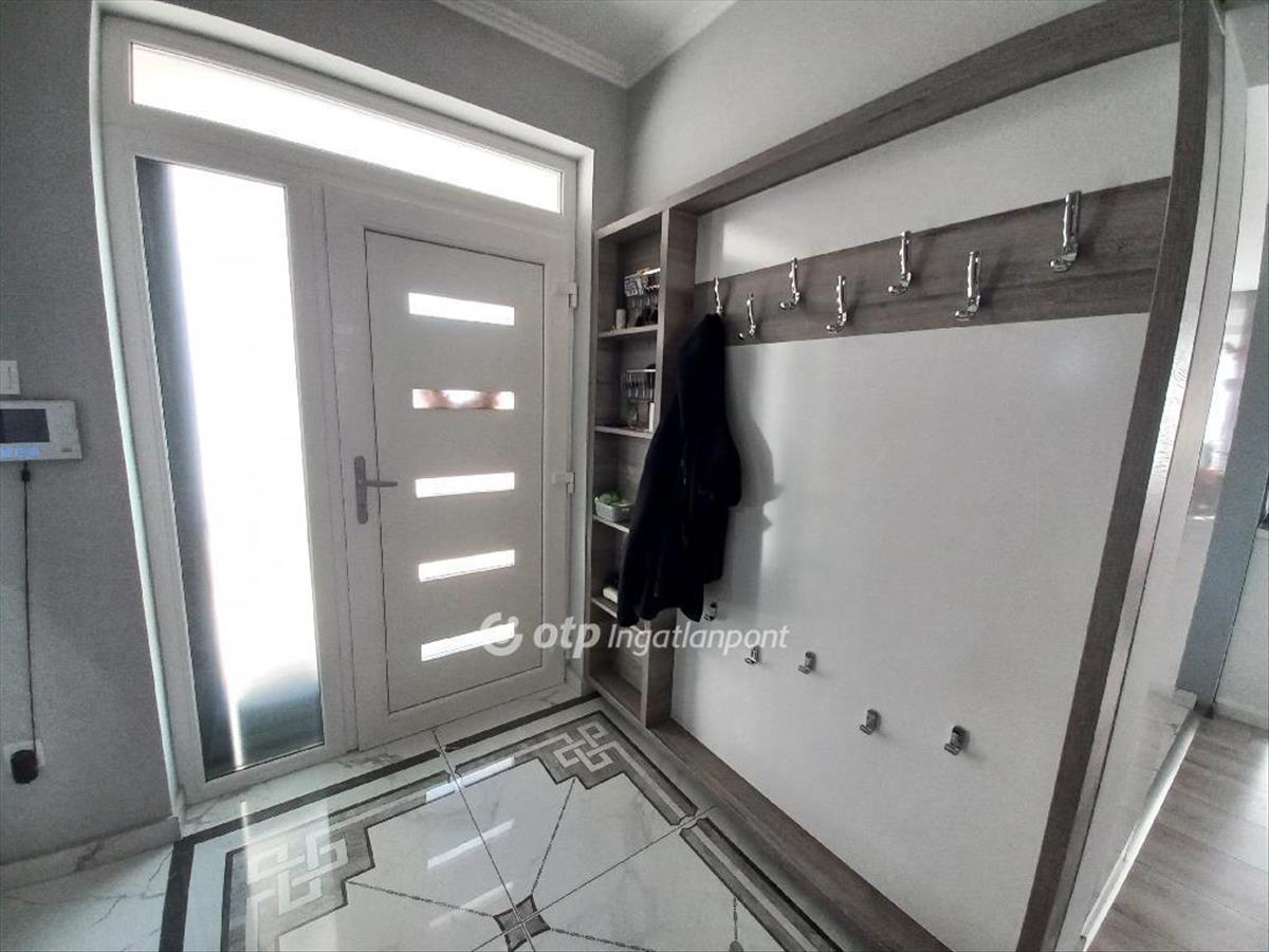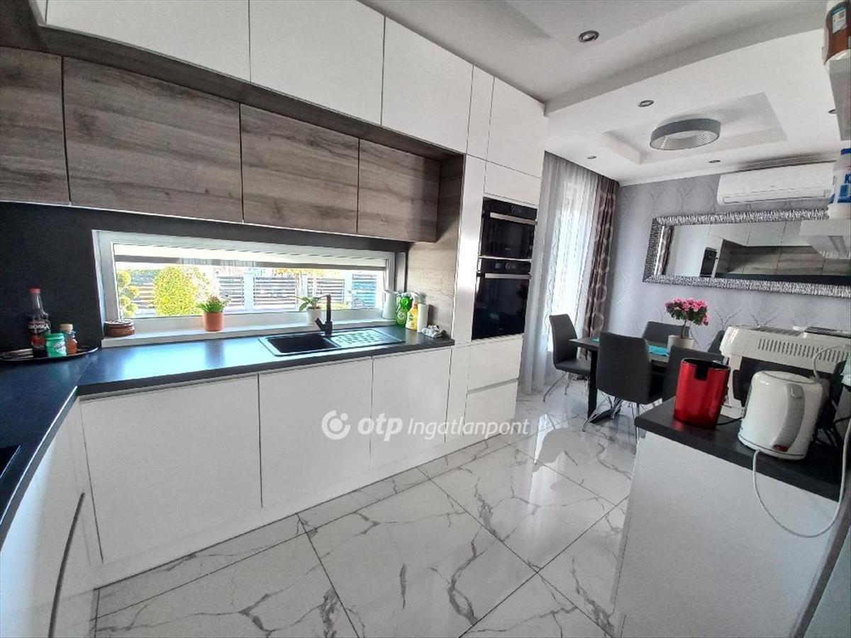 A csendes, újépítésű házak környezetben található ingatlan magas műszaki tartalommal és minőségi anyagokkal épült, mobilról vezérelhető okos otthon. 12 Cm-es külső és 20 cm-es mennyezeti szigeteléssel épült phorotherm téglából. 3 Rétegű műanyag nyílászárókkal, alumínium redőnnyel, szúnyoghálóval, biztonsági ajtóval. Fűtése gáz-cirkó, telefonról irányítható SomfyIO termosztáttal. a fürdőszobában padlófűtés van. a hűtésről 3, 5 kw-os Hitachi inverteres split klima gondoskodik. a konyha gépesített, magas minőségű gépekkel felszerelt (Bosch mosogató, tűzhely, Whirlpool sütő, mikro, stb. ), Melyek az ár részét képezik.
