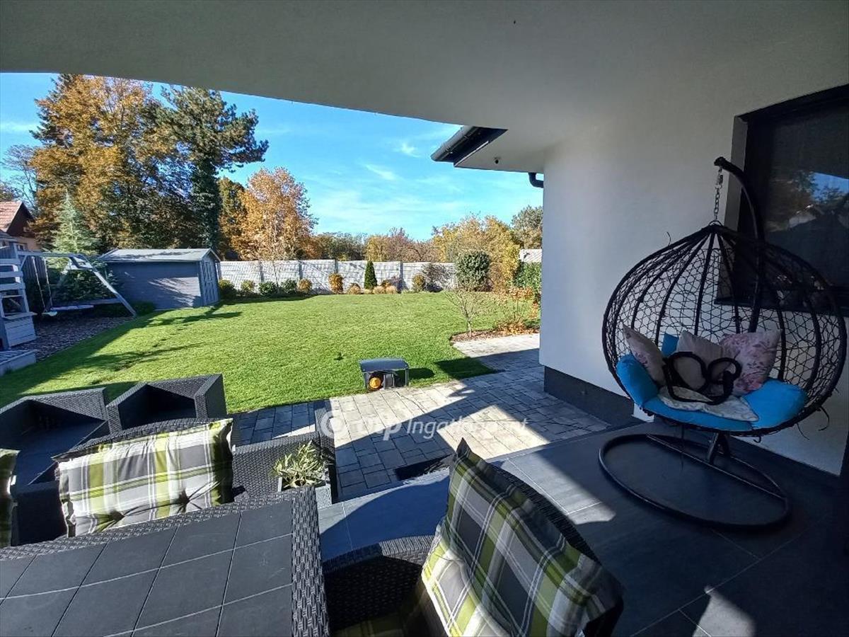 A kert parkosított (kb. 200 Különféle növénnyel, fákkal) automata locsolórendszerrel kiépített. a gyephez fűnyíró robot van telepítve. a kertben gyerekjátszótér, 9 m2-es faház. a garázs automata kapuval, műgyanta padlózattal rendelkezik, salgó pocokkal felszerelt.