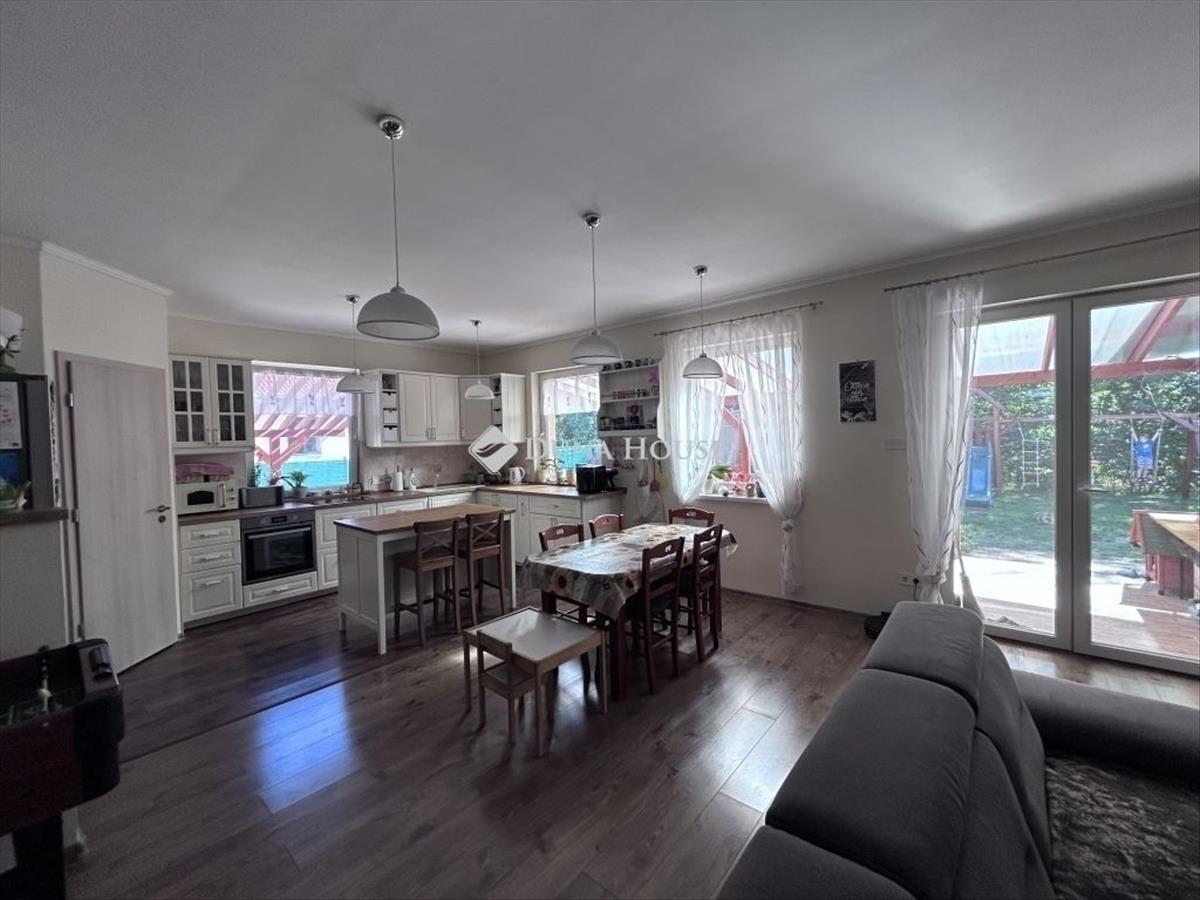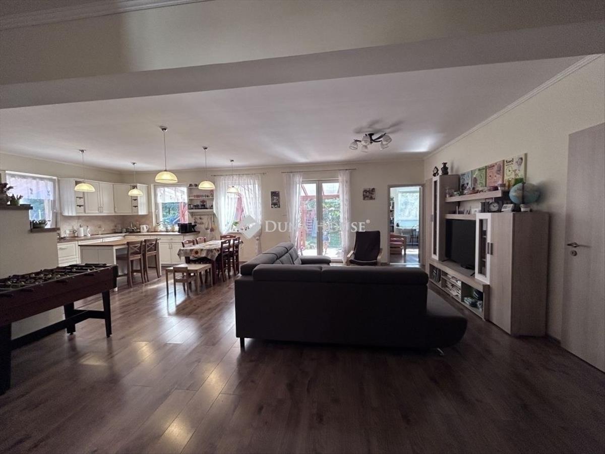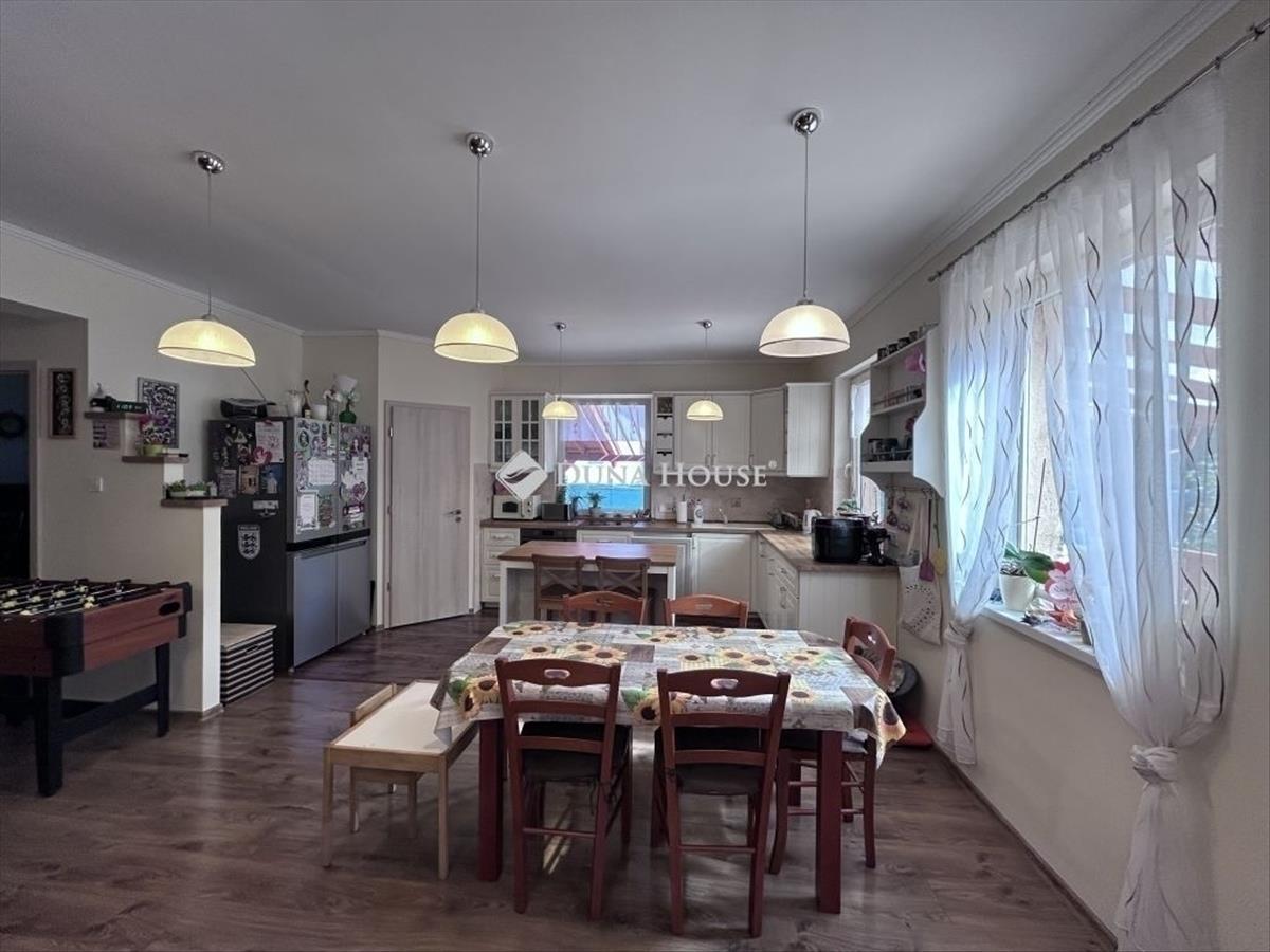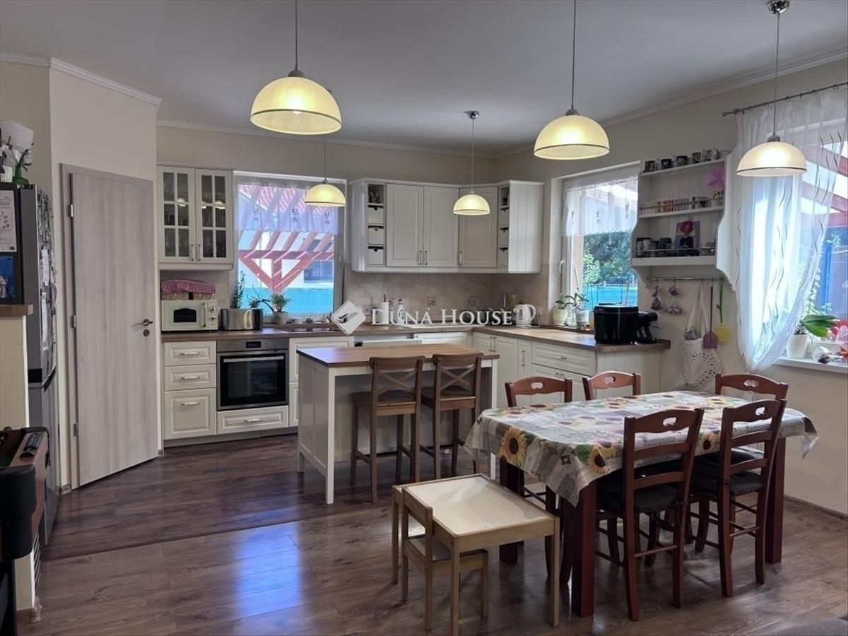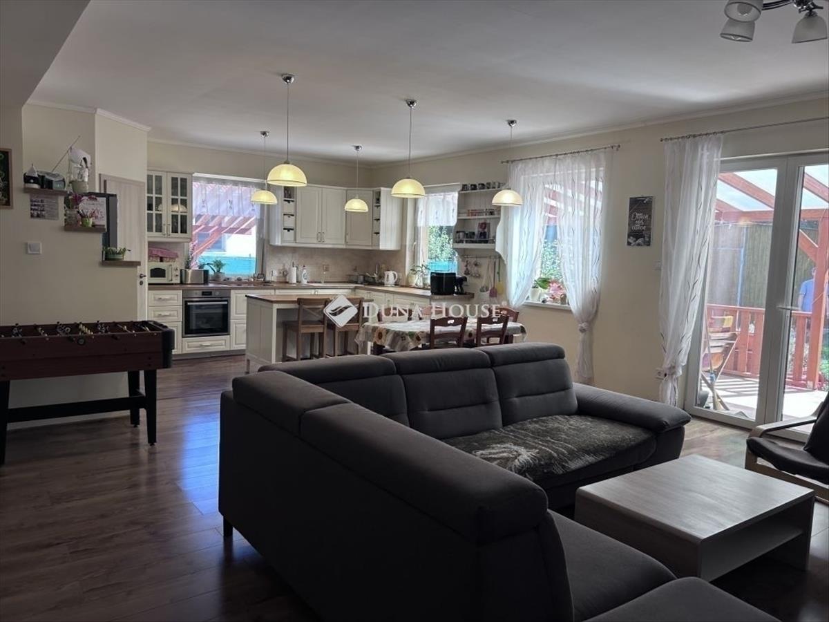 Erdőkertesen 2019-es, tégla építésű, egy nappali + 4 szobás, két kocsibeállós, 800 nm-es telken lévő családi ház eladó. Az egyszintes, igényes kivitelezésű ház szigetelt, cseréptetős, a komfortot a modern kondenzációs kazán (padlófűtéssel) biztosítja, a nyári melegben pedig igénybe lehet venni a légkondicionálót is. Mindkét (! ! ) Fürdőszobában törölközőszárító található, a rezsi alacsony szinten tartását a tetőre szerelt napelemek segítik (az elektromos fogyasztás ennek köszönhetően egy jelképes összeg csupán). a ház teljesen körbejárható, a két kocsibeálló közül az egyik fedett, külön-külön kapuval. a telek hátsó részén a füvesített udvaron egy mindent elnyelő tároló található (igény esetén garázsként is funkcionálhat), valamint a gyerekek nagy-nagy örömére egy saját kis játszótér kerti sütögetővel kiegészítve. a fűszerkertben pedig sok minden megterem, amit a jól felszerelt, izléses konyhában aztán fel is lehet használni. a természettudatos kialakítást bizonyítja továbbá a föld feletti és alatti víztározási lehetőségek, és az ökokert is. a környék csendes, a telek mögötti rész kis ligetes, beépítetlen terület. Az ingatlant a tágas, jól átgondolt, világos terek jellemzik, minden helyiség ablakkal ellátott, továbbá több tároló is rendelkezésre áll. Amennyiben az új vevő igényli, a nappaliban kandalló is kialakítható (a kivitelezés során kémény lett kialakítva a fő falban). 10 Perc sétára buszmegálló, vasútállomás található, Budapest 30-35 percen belül elérhető. Ideális választás olyan családok számára, akik költségmentes, tágas és alacsony rezsijű ingatlant keresnek, ahol mindenki számára biztosított a személyes tér, de a közösségi terek is adottak a családi programokhoz. Természetesen alkalmas Otthon Start hitelre is. Megtekintéshez előzetes egyeztetés szükséges, ezzel kapcsolatban keressen telefonon. FIX 3% lakáshitelre megvehető