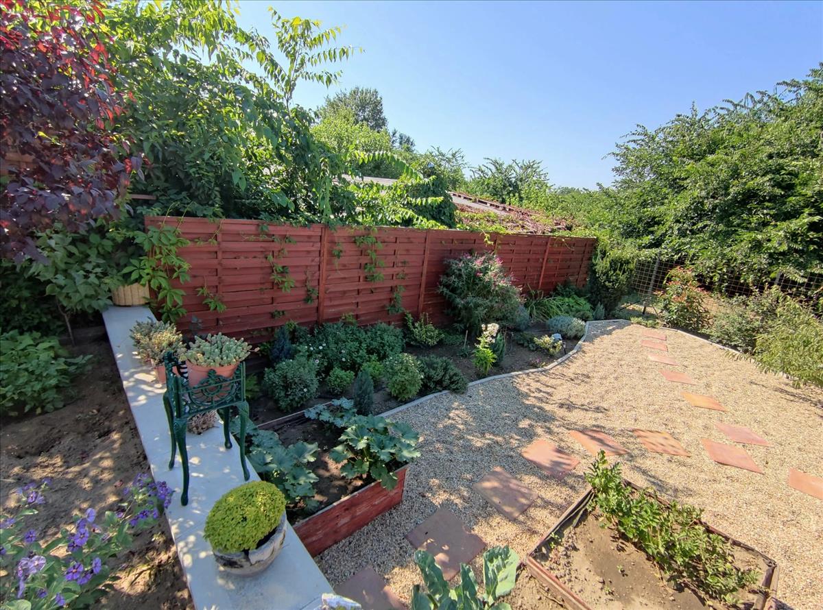 A házhoz tartozó, 465 négyzetméteres, téglalap alakú telken rendezett kert várja új tulajdonosát, ahol a szabadban töltött idő valóban élvezhető. a 50 négyzetméteres terasz kiváló helyszín családi étkezésekhez vagy baráti összejövetelekhez. Az udvari beálló kényelmes parkolási lehetőséget kínál, a tároló pedig a praktikus tárolást segíti.