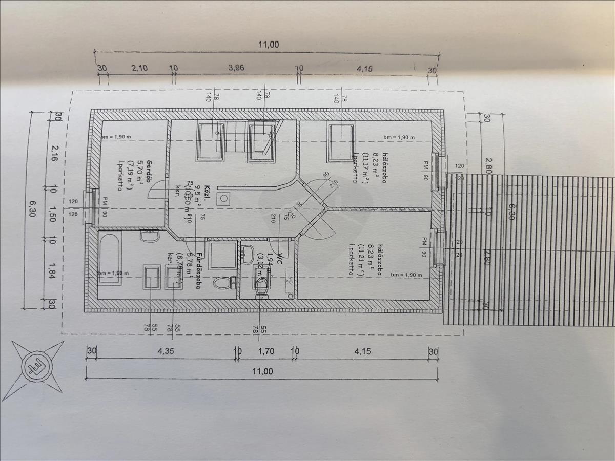 A 95 négyzetméteres lakótérben 2 szoba és 2 félszoba kapott helyet, valamint két fürdőszoba is rendelkezésre áll, ami a családi élet során különösen praktikus. a kondenzációs kazán mellett légkondicionáló is beépítésre került, így az otthon hőmérséklete egész évben szabályozható.