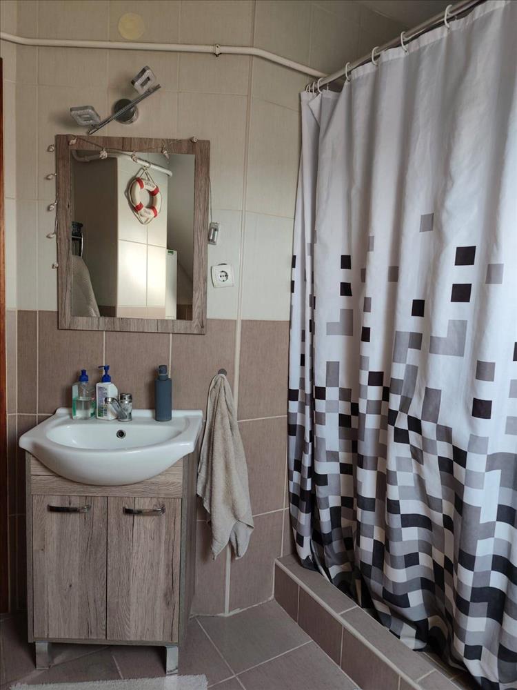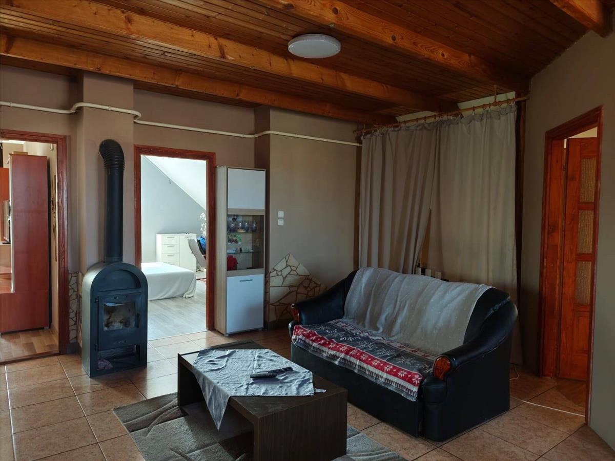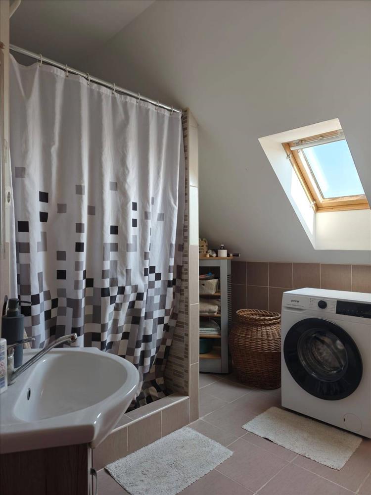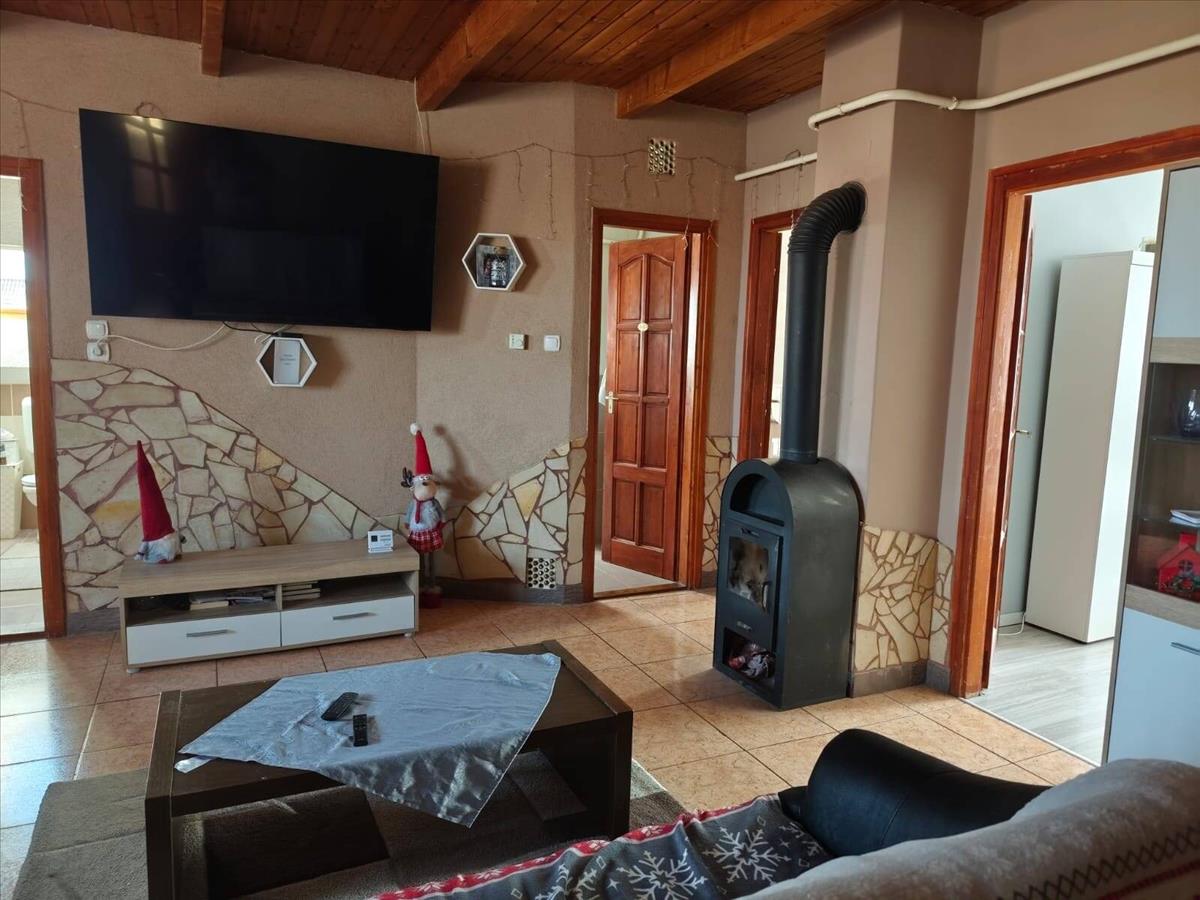 The house includes two bathrooms and two separate toilets. The upper floor is insulated, contributing to improved energy efficiency. Heating is provided by a gas boiler and a mixed-fuel boiler, while the upper living area is equipped with a combi gas boiler. Hot water on the lower floor is supplied by an electric boiler.