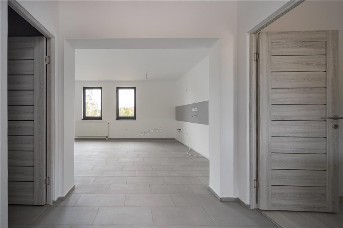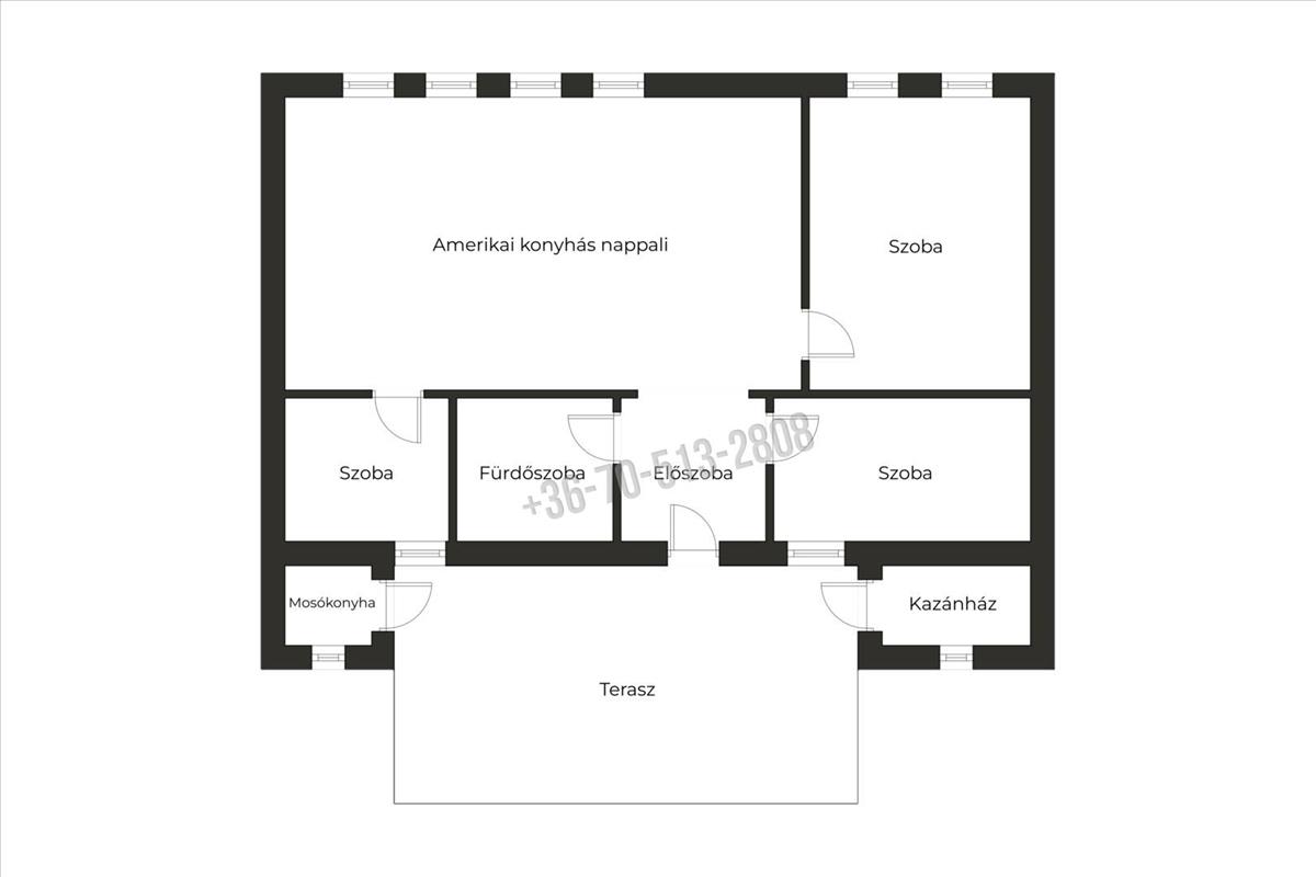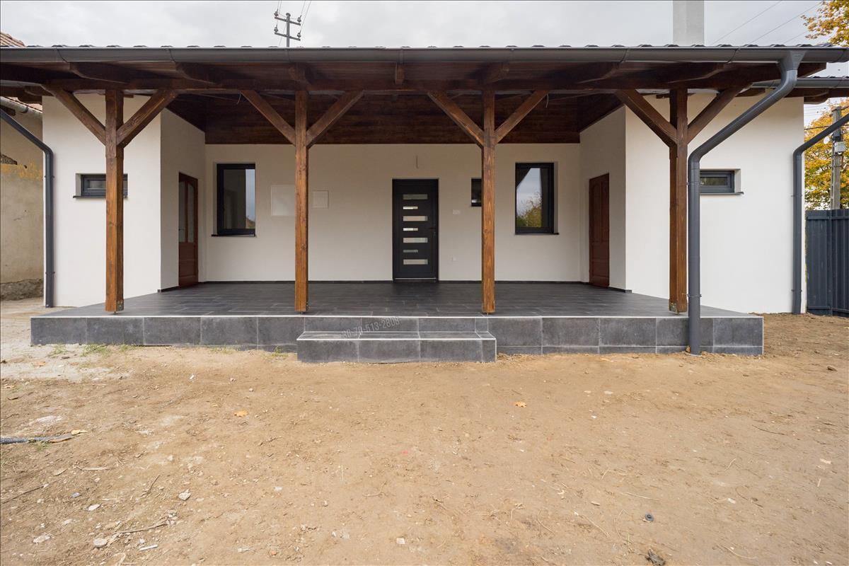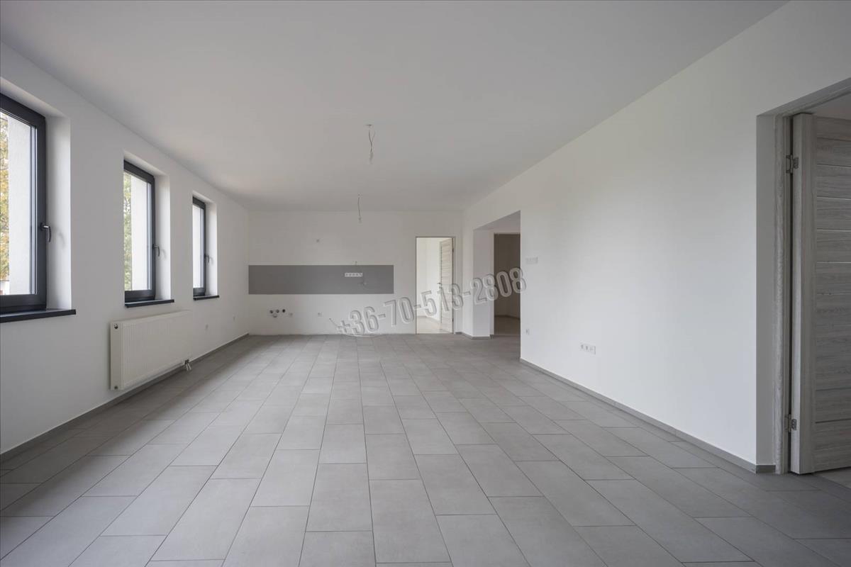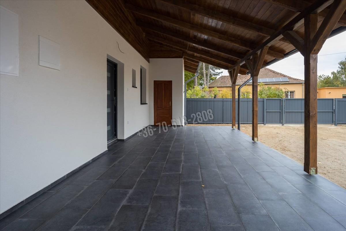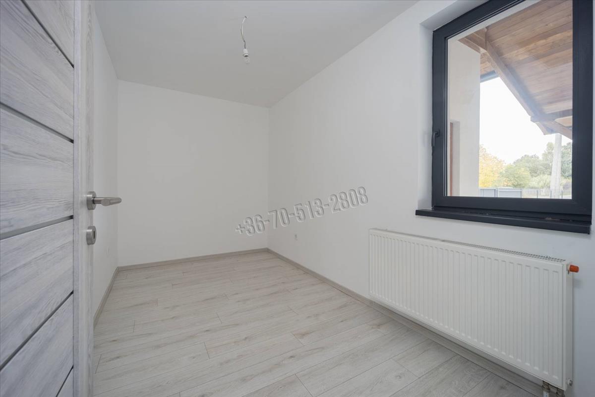 Hasznos alapterülete 80m2, melyben kialakításra került egy előszoba, két szoba, amerikai konyhás nappali, fürdőszoba, valamint egy 6m2-es szoba amely alkalmas lehet gyerekszobának vagy gardróbnak is. a bejáratnál egy tágas, 28m2-es fedett terasz is helyet kapott, innen nyílik a kazánház és a mosókonyha, külön bejárattal és fűtéssel.