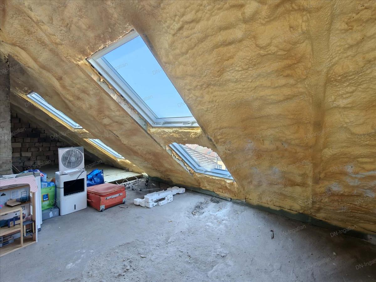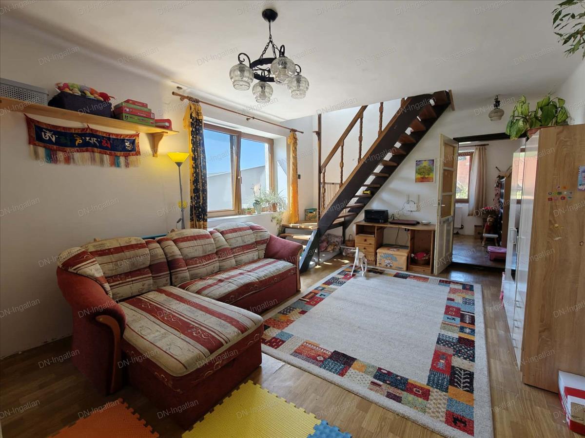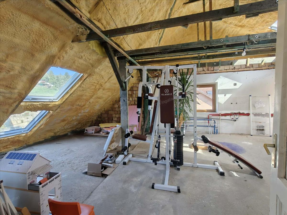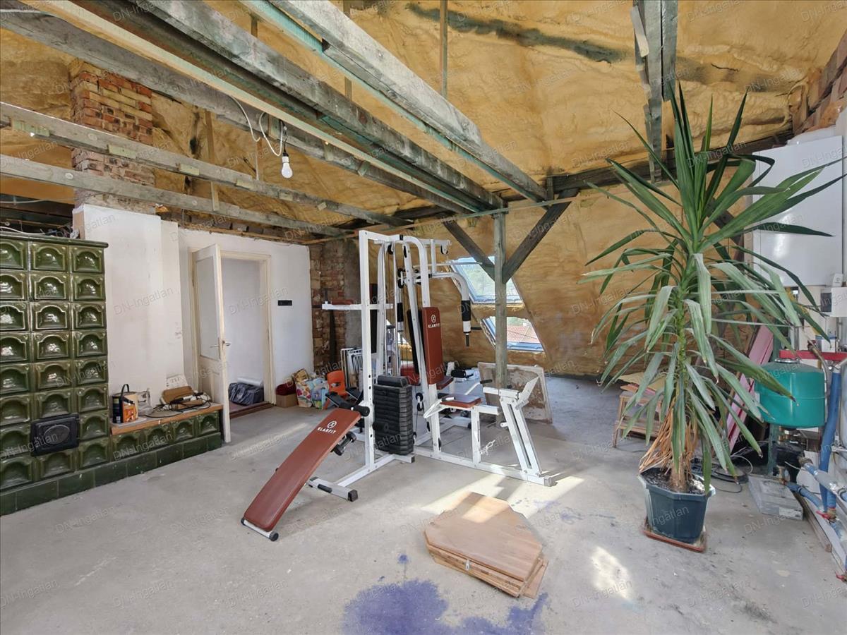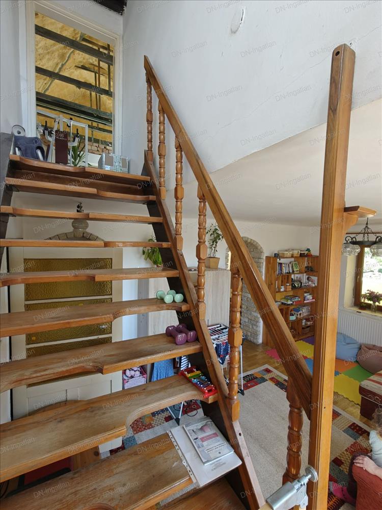 A nappaliból egy fa lépcső vezet a tetőtérbe, melynek felújítása megkezdődött, de a végleges kialakítás igény szerint a leendő tulajdonos feladata.