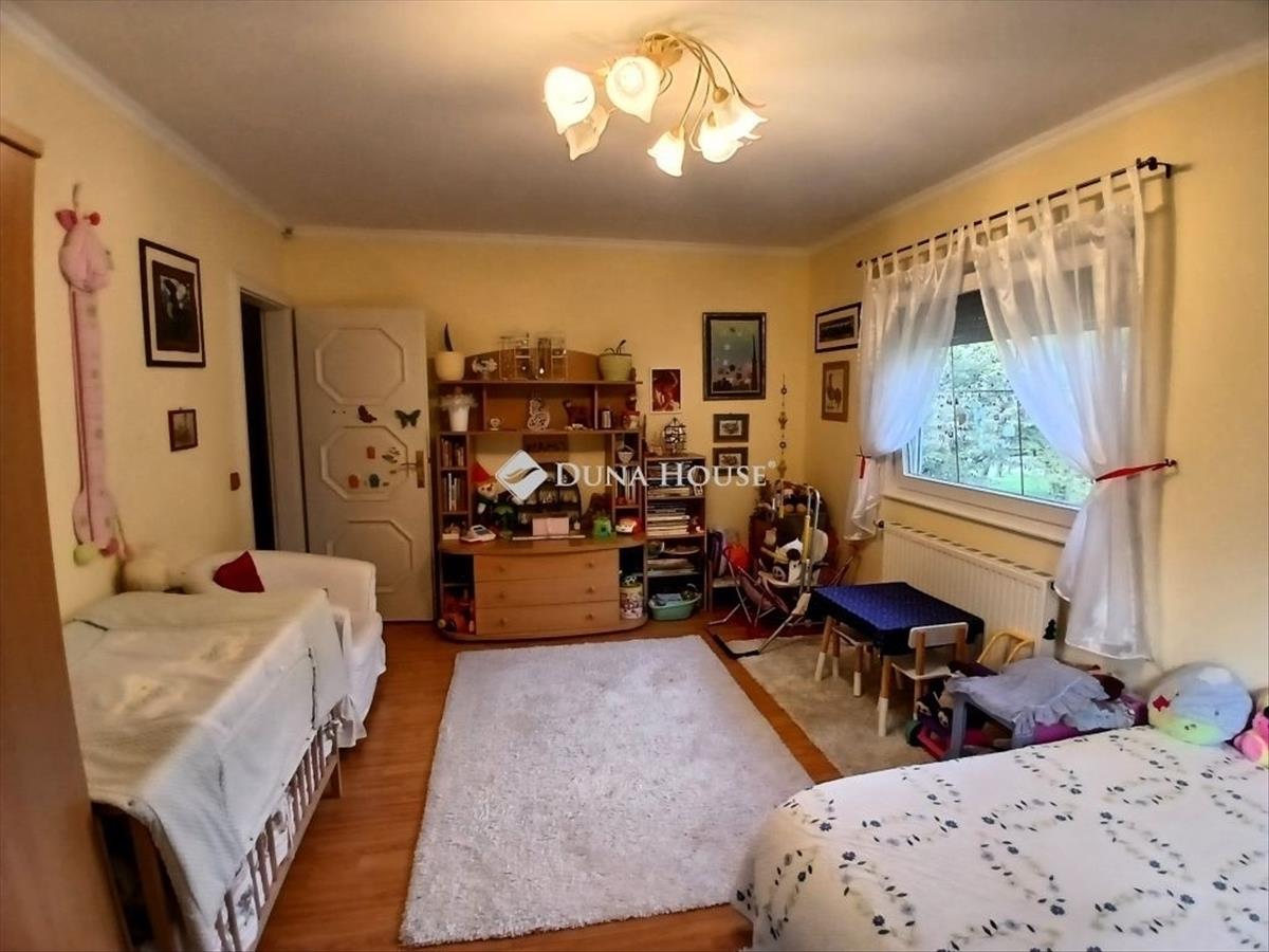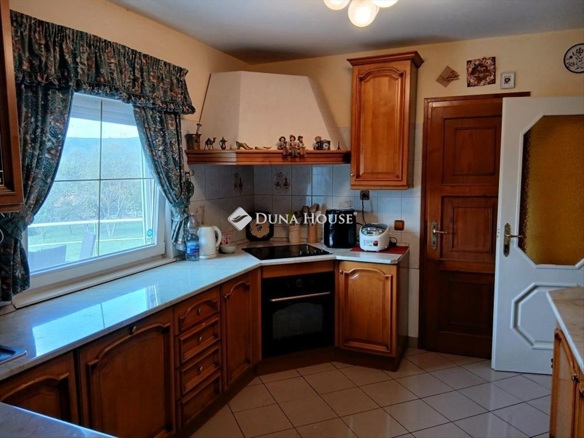 A családiház két utcáról is megközelíthető, a 11-es sz. Főút zajától teljesen védett mivel a telek felső harmadában helyezkedik el. Alapterülete nettó 350 nm ebből 120nm a pince-szuterén szint míg a földszint 230nm Az épület 1993-94 ben került kivitelezésre, Wolf típusú könnyűszerkezetes épület. a pince-szuterén-földszint kialakítású házrész pedig beton-sávalapokon, vasalt zsalukő pincefalakkal -pillérerősítéssel -szerelt, hőszigetelt falszerkezettel, kis hajlásszögű, kontyolt nyeregtetővel, cserépfedéssel készült. a pinceszinten szobák, tárolók, fürdőszoba-mosókonyha, kazánház, kétállásos garázs, és közlekedők lettek kialakítva. a földszinti lakószinten előszoba, konyha, két fürdőszoba, wc, kamra, étkező-nappali, két iroda, három szoba, egy félszoba nyert kialakítást. a lakás burkolatai, felületképzései újszerű állapotban vannak. a közlekedők, nappali, konyha és a fürdőszobák lapburkolattal és csempével burkoltak. a szobák szőnyegpadlóval fedettek. a konyha gépesített, jól felszerelt, kapcsolódik az étkezőhöz, nappalihoz. a nappaliból kétszárnyú ajtón lehet kijutni a hátsó kertrészre, burkolt teraszra. a földszintről belső lépcsőn keresztül juthatunk a szuterénba és a garázsba. Az ingatlanhoz tartozik egy gyönyörűen gondozott 3000 nm-es udvar is. a fűtést gázkazán biztosítja, a szennyvízkezelést zárt rendszerű Singulair -típusú tisztítómű beépítésével oldották meg. Az utcában a csatorna kiépítése folyamatban van! a villanyórában 3x25A áll rendelkezésreSzéles, díszburkolattal fedett behajtóról íves lépcsősor vezet az épület bejáratához, ill. a teraszra, ahonnan csodálatos kilátás nyílik a Dunakanyarra! Legyen részese a csendnek és nyugalomnak, ahol a szomszédok is messze helyezkednek el egymástól!