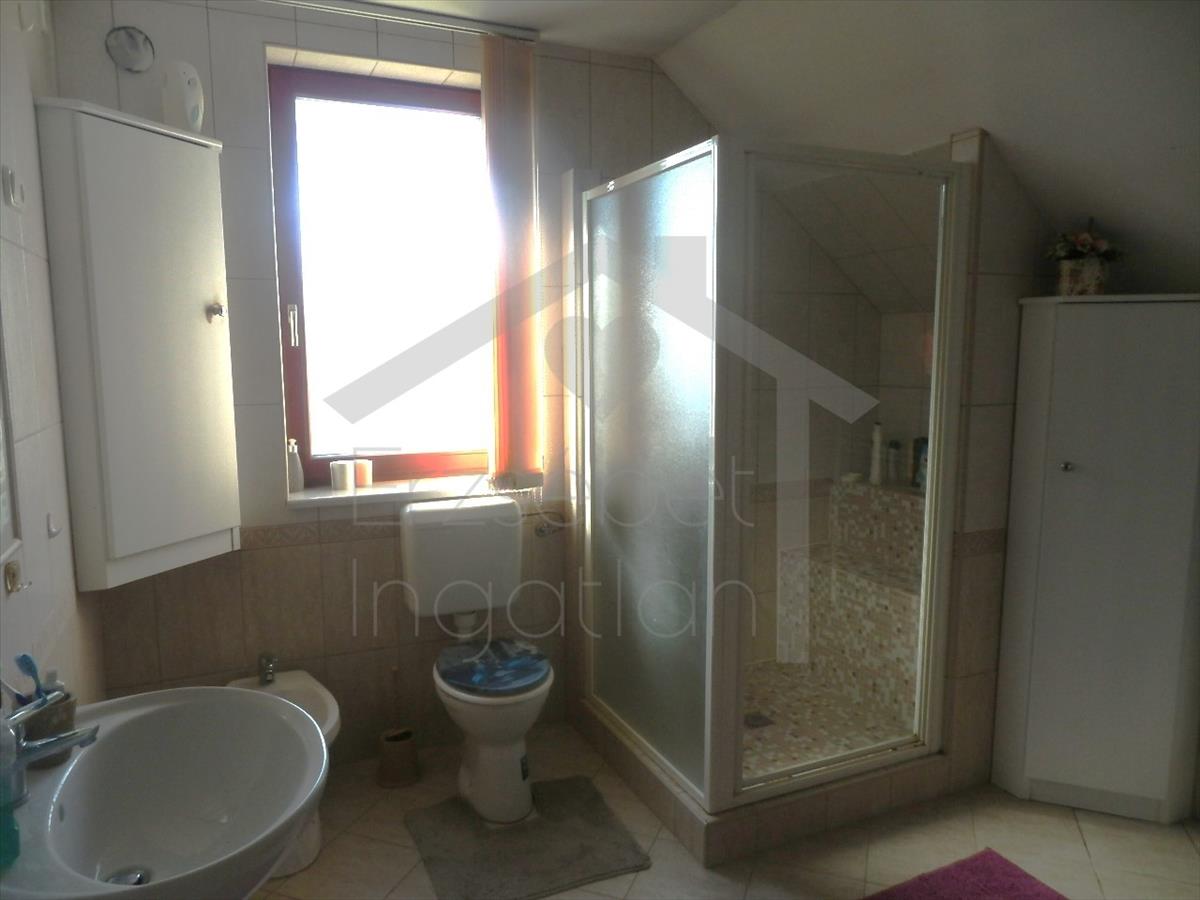 For sale in Esztergom-kertváros, near the Kovács confectionery, a net 120m2 two-storey, 3-room brick house with all comforts on an 842m2 plot with public utilities. The building is built of brick and has a concrete tile shelling. On the external façade there is heat-insulating plaster, the overhead is low. On the lower floor there is the kitchen and living/dining room, a bathroom and a pantry. The kitchen furniture and doors are also made of wood. Under the chamber there is a cellar, here is also the boiler. On the upper floor there are two bedrooms, a walk-in closet and the bathroom. Both bathrooms have a shower. The heating is powered by a gas boiler, heat dissipation underfloor heating and radiators. There is also a cooling heating air conditioner in the staircase, which is useful during the transition period. 3-Phase electricity, closed yard, parking for several cars and a farm building in the yard. The property can be occupied in the spring. Apart from kitchen furniture, furniture is not included in the purchase price. .