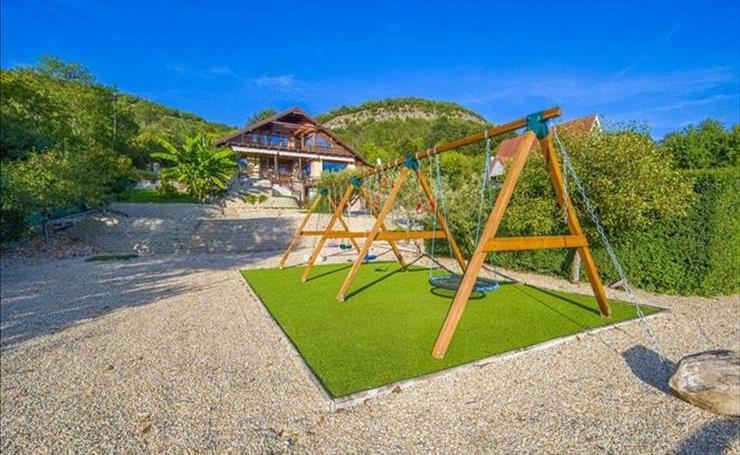 A kert szinte gondozásmentes, kényelmesen elfér még egy szauna, és nagyobb medence is. a legalsó szinten kazánház, garázs, hatalmas tárolók, hobbiszoba is helyet kapott.
