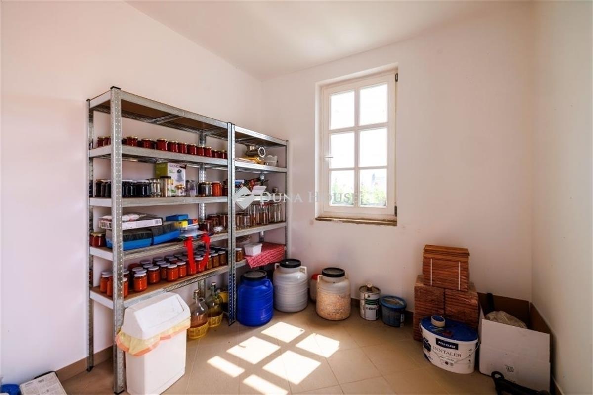 Különleges adottságokkal rendelkező birtok Etyek egyik legszebb részén, az Öreghegyen Az ingatlan egész területéről lenyűgöző kilátással bír a Budai-hegyvidékre. a terület zártkerti övezetben található, de kivett művelésű, így nem tartozik mezőgazdasági használat alá. a kerítéssel körbevett 6253 négyzetméteres telken rengeteg termő gyümölcsfa többek között birsalma, kajszi, őszibarack, körte, szilva, meggy és cseresznye - illetve többféle bogyós gyümölcsök széles választéka is megtalálható, mint málna, szedermálna, fekete málna, som és pelyhes meggy. Mindezeken túl 700 m²-en szőlőt telepítettek, főként Cabernet Franc fajtát. Az öntözést korszerű csepegtetőrendszer segíti, melyet két fúrt kút lát el vízzel. a területen tágas, szabad rész is rendelkezésre áll, mely ideális lehet konyhakert létesítésére, medence, kerti kialakítására vagy egyéb célokra. a birtokon egy teljesen újjáépített, korábbi présházból 2023-ban kialakított és bővített lakóépület is található, amelynek hasznos alapterülete 90 m². a ház 10 cm vastag kőzetgyapot szigetelést kapott, kívülről pedig nemesvakolat borítja. a fűtésről hűtő-fűtő klímaberendezés, valamint egy hangulatos cserépkályha gondoskodik. a tökéletes szigetelésnek és a magas minőséget képviselő fa nyílászáróknak köszönhetően, minimális energia felhasználásával állíthatjuk be az ideális hőmérsékletet télen-nyáron. a telken további épületek is helyet kaptak: egy 30 m²-es, két helyiségből álló melléképület, külön füstölő és egy fedett gépkocsi-beálló is rendelkezésre áll. Kérdéssel, megtekintéssel kapcsolatban hívjon a hét bármely napján! Hitel.hu - Hasonlítsa össze a bankok lakáshitel ajánlatait