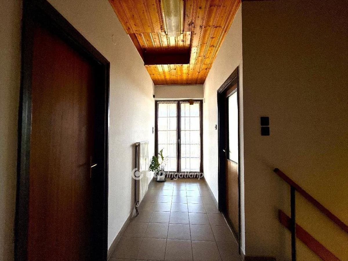 Helyiségek: 3 szoba, 2 félszoba, nappali, 2 fürdőszoba, 5 wc, 2 konyha étkezővel, 3 közlekedő, 4 tároló, kazán helyiség, előtér és hatalmas terasz, illetve 2 lakás