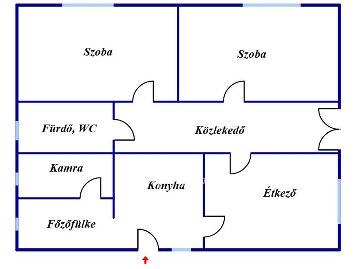 A vályog szerkezetű ingatlan praktikus elrendezésű: két tágas, világos szoba (20, 2 nm és 19, 4 nm ), külön étkező (12 nm , ami szobává is alakítható ), konyha, kamra, fürdőszoba és közlekedő helyiségek szolgálják a kényelmes mindennapokat. a 2, 5 méteres belmagasság kellemes térérzetet biztosít.