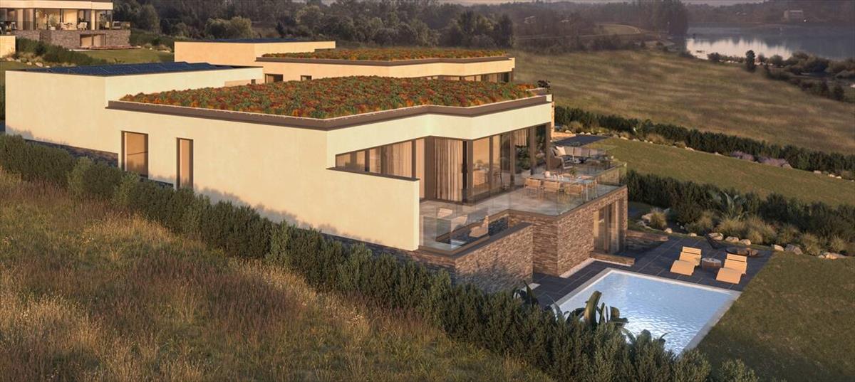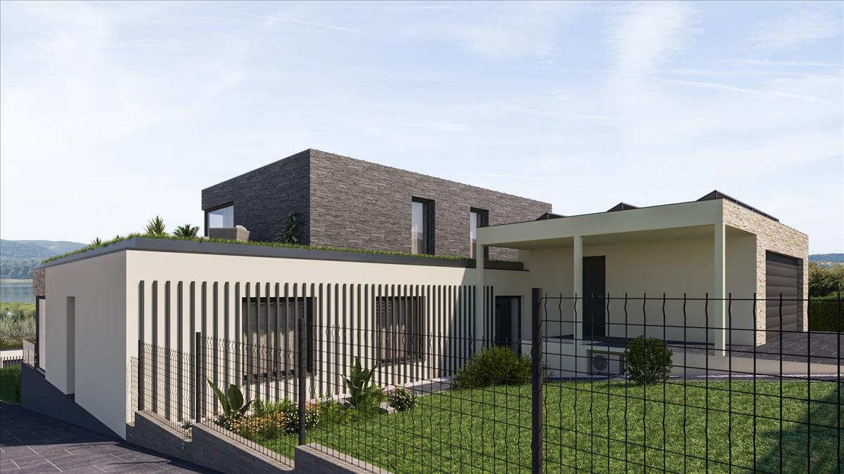 Dear interested party! If you and your family are looking for a new home or a holiday home, where luxury and relaxation go hand in hand, and you can imagine all this with a panoramic view of the waterfront, then you have come to the right place! The Gaia VillaPark is built in Fehérvárcsurgo, near Székesfehérvár, on the direct bank of the reservoir. Every single element and detail of the residential park is characterised by modern style, quality and sustainability. There are two types of construction, the one-storey villa and the two-storey villa with roof terrace. Between 10 and 10 buildings of each type will be completed. The buildings will be constructed with luxury materials and quality fittings. Spacious spaces will ensure comfort and undisturbed relaxation for all members of the family. The layout envisioned by the designer is particularly practical and has several functional rooms. The use of renewable energy is not neglected either, with a heat pump for heating and a 10 kw solar panel system with a 10 kw battery pack. Smart home solutions include electric shutters, automatic irrigation system, automatic ventilation system, camera system, electric gate, electric garage door, video phone at the gate and many more extras. The interior design elements include Spanish and Italian cold tiles and Swedish warm tile floors. The buildings will be equipped with a maintenance-free and walkable green roof. The plots are 1250 m2. The house has a panoramic terrace from where you can admire the breathtaking view at any time of the day. In addition, a garage with two parking spaces will be built for each property, which will make parking hassle-free, while at the same time providing a suitable place for your belongings when not in use. In the basement of each home is a Wellness area of no less than 42 m2! The design elements, colours and finishes can be chosen according to the customer's requirements, although in a specific form and with a certain number of options. Furniture is not included in the purchase price, but the contractor can provide a solution following a consultation and calculation. The settlement is easily accessible from almost any part of the country thanks to the motorway. In the nearby big city of Székesfehérvár, a rapidly developing settlement with nearly 100, 000 inhabitants, you will find everything you need! In case of purchase, the new owner will get the land of his choice following the reservation and the first phase of construction will start. More information on payment schedules and further details of the property can be provided by email or phone. Hitel.hu - Hasonlítsa össze a bankok lakáshitel ajánlatait