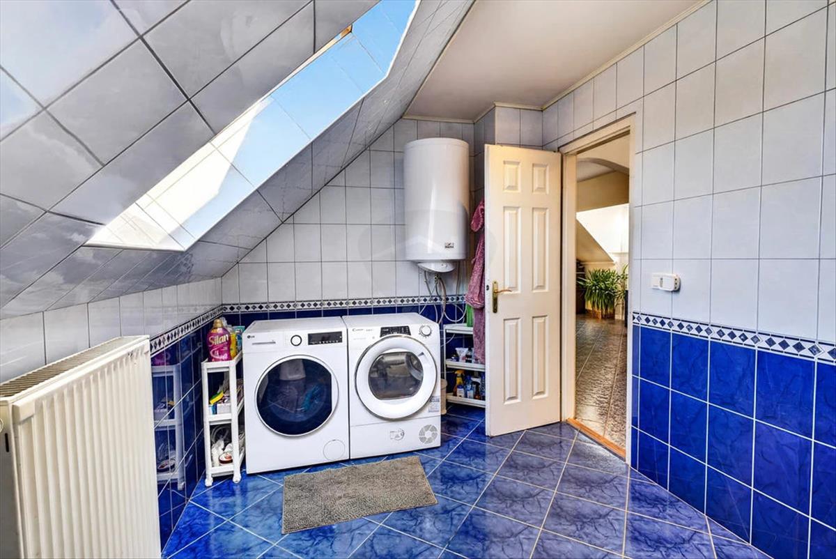 A műszaki tartalomra is nagy figyelmet fordítottak a kivitelezéskor, hiszen a 32 Amperes villanyhálózat már akkor rézkábelekkel épült ki. Az otthon melegéről egy megbízható kondenzációs gázkazán gondoskodik radiátoros hőleadókkal, de mivel az ingatlan kéménnyel is rendelkezik, akár egy hangulatos kandalló kialakítására is van lehetőség alternatív megoldásként. a kültéri fa nyílászárókat hőszigetelt üvegezéssel látták el, ami a leginkább passzol az épület egyedi karakteréhez, bár a biztonsági fém bejárati ajtó és a beltéri faajtók már igényelnek egy kis esztétikai frissítést.