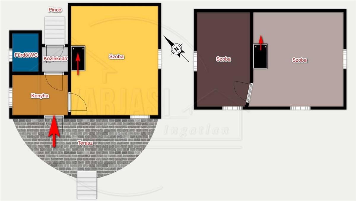 -Kb. 10 m2-es pince nyílik a földszintről;