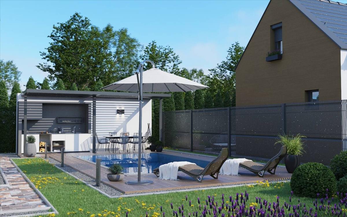2025-ben épült, kétszintes, két különálló lakásos, medencés (3×8 m) családi ház 445 m²-es telken