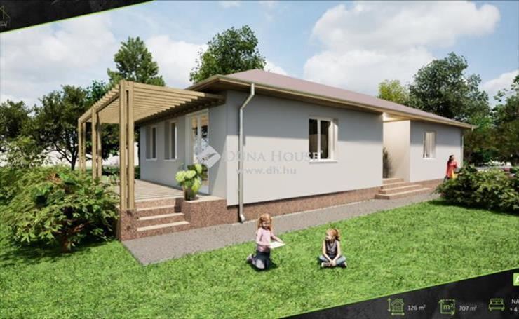 Felsőpakonyban, családias hangulatú szomszédságban kínálunk 126 m2 alapterületű új építésű ingatlant nagyon kedvező áron! a korszerű, könnyűszerkezetes ingatlan 700 m2-es közművesített telekre épül, melyet a kivitelező tereprendezés után, lekerítve ad birtokba. Tágas, pergolás terasz és térkövezett, fedett kocsibeálló is kialakításra kerül.