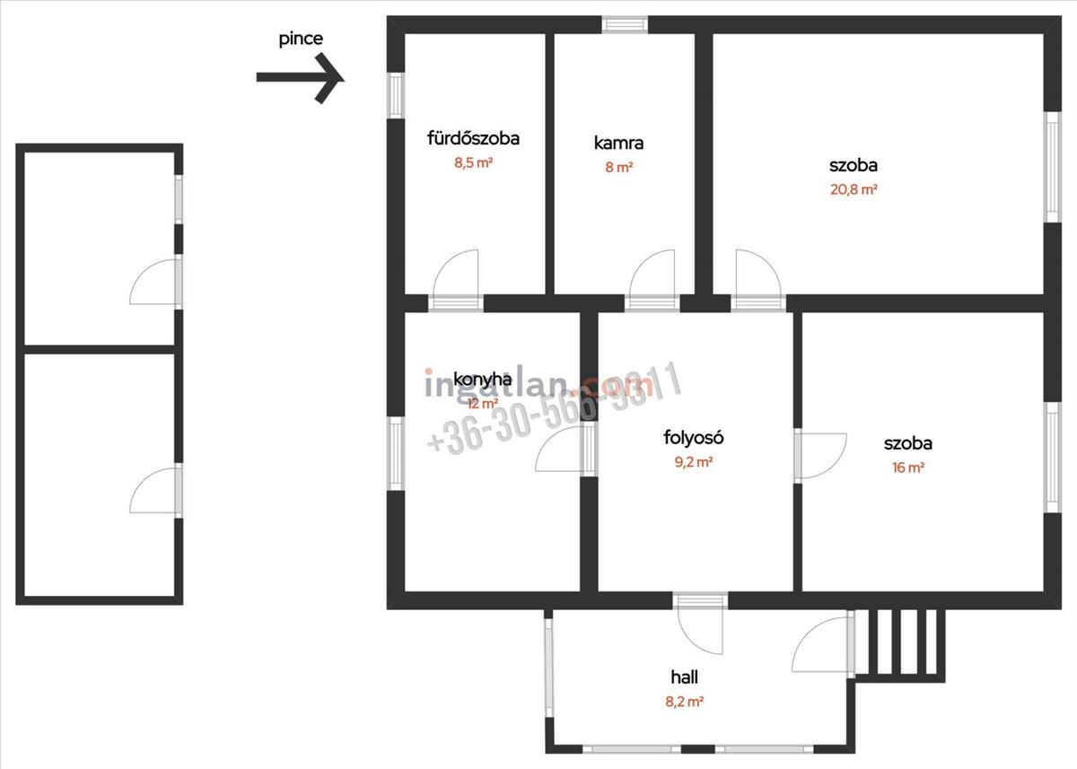 A telken egy 2 helyiséges különálló épület is helyet kapott, ebben nyárikonyha, füstölő, és egy kamra található. Kisebb átalakítással kiváló vendégház, home office vagy bármi is lehet.