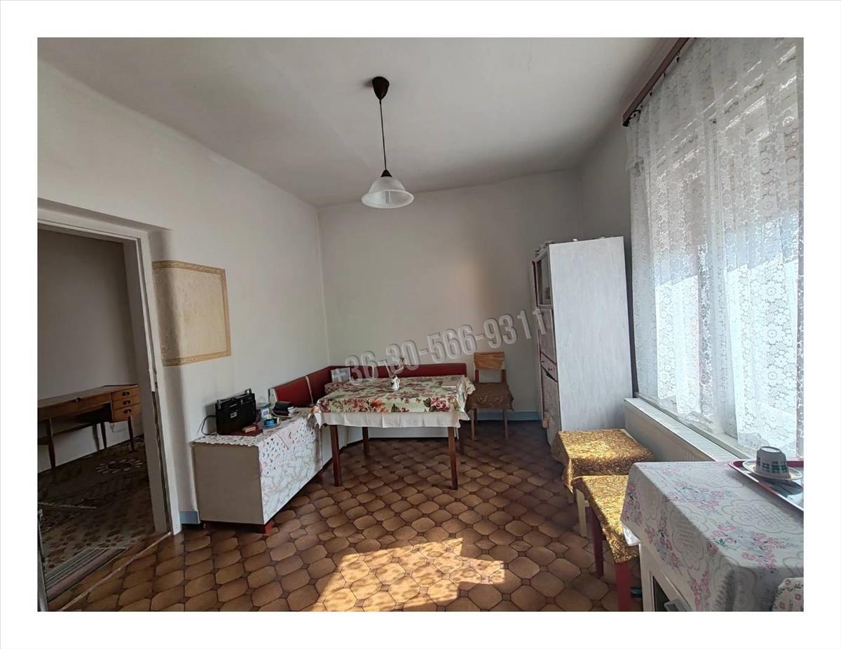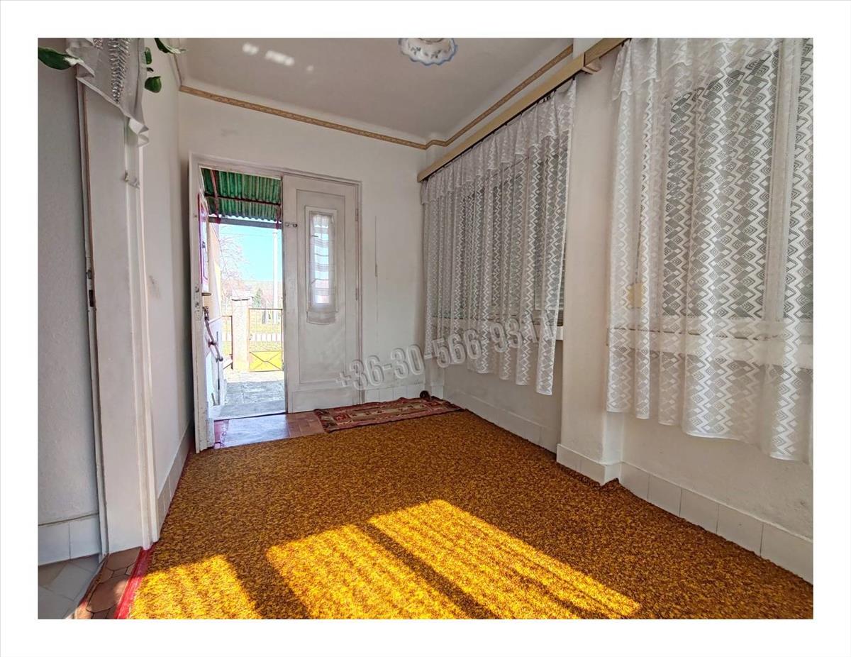 A lakóépület 82, 5 négyzetméter, magas alapra vályogtéglából épült. Kényelmes elosztású, egy tágas- körbenapozott hallból nyílik a közlekedőfolyosó, ahonnan az utca felé egy hálószoba és egy 20, 8 négyzetméteres, akár nappalinak is ideális szoba található. a hallal szemben jelenleg kamraként használt helyiség, de mérete miatt, akár háló vagy gyerekszobának is berendezhető. a kertre néz a konyha, innen nyílik a kádas fürdőszoba.