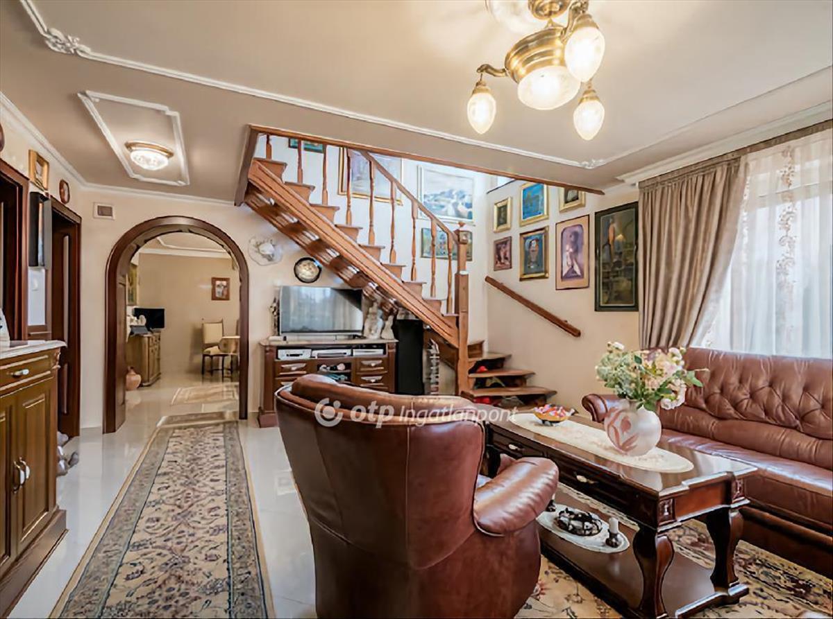 Az ingatlan kiváló elrendezésű, világos és nagy méretű belső terekkel rendelkezik. Egyedileg készült prémium minőségű polgári stílusú mélybéléses fa beltéri ajtók elegáns savmaratott üvegezéssel és prémium minőségű nagypolgári stílusú kazettás fabukolatok kerültek a lakótérbe, mely igazi luxusérzetet kölcsönöz. Az otthon lelke a földszinten található magasfényű kerámialapokkal burkolt nappali élettér, mely egy légtérben található az étkezővel, a teljesen felszerelt konyhával és kijárást biztosít az udvaron található méretes fedett teraszra. Az emeleti szinten 4 szoba, nagyméretű fürdőszoba (zuhanyzóval és pezsgőgürdős sarokkáddal) és külön wc található. a saját gardróbbal kialakított erkélyes hálószoba, valamint szintén erkéllyel és körpanorámás nagy ablakokkal rendelkező 3 szoba a természetes fénynek köszönhetően mindig napfényes, világos.