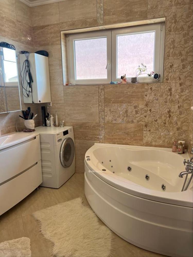 Az egész házban beépített bútorok, egyedi tervezésű minőségi fa konyhabútor van beépített gépekkel (indukciós lap, elektromos sütő, profi páraelszívó, mosogatógép, gránit mosogató). Bukó-nyíló műanyag hőszigetelt nyílászárók hőtükrös és színezett üveggel, elektromos hőszigetelt redőnyökkel, szúnyoghálóval. 10 Cm-es szigetelés, nemesvakolat, homlokzati kőburkolat, az épületben járólapos fűtött garázs Hörmann garázsajtóval, az udvaron különálló 45 nm -es, fűtött kerámialapos garázs Hörmann automata garázsajtóval, WC-kézmosóval, finn szauna zuhanyozóval. a ház fűtése kondenzációs kazánról megy, minden szintre hűtő-fűtő klíma került. a gépészet a ház alatti tágas betonozott pincében (41 nm ) kapott helyet, amihez lépcsős lejárat vezet. Egyedi tervezésű és gyártású prémium kovácsoltvas korlátok és kerítés került kialakításra automata kapunyitással, valamint kamera + többzónás riasztórendszer, biztonsági bejárati ajtóval.