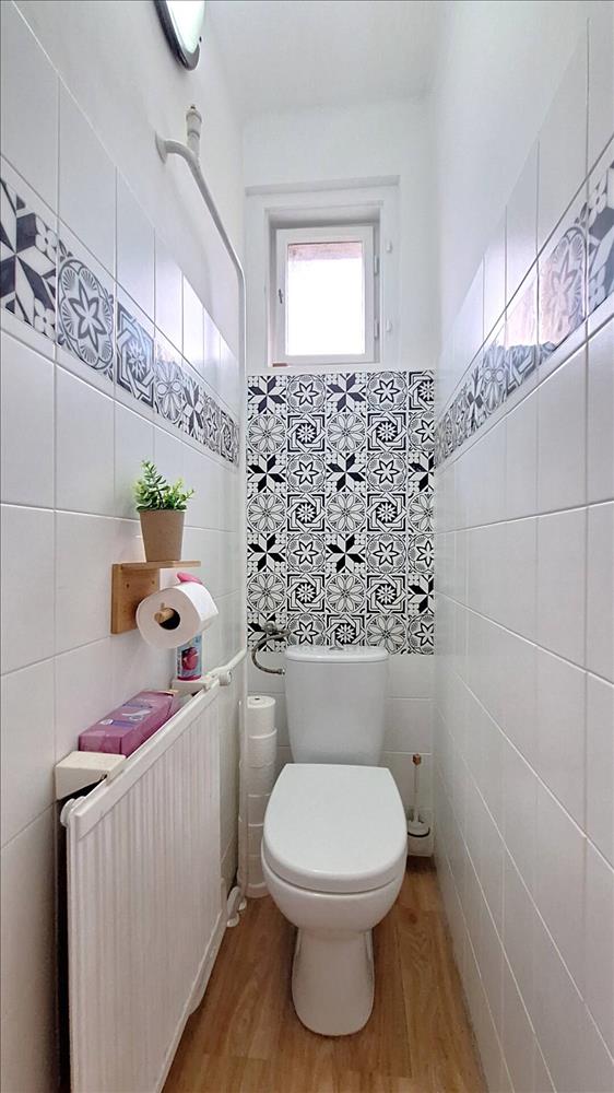 A szobák laminált padlóval, a többi helyiség minőségi járólappal burkolt. Praktikus elrendezés: közvetlen kertkapcsolat és belső lejárat a több helyiségből álló pincébe.