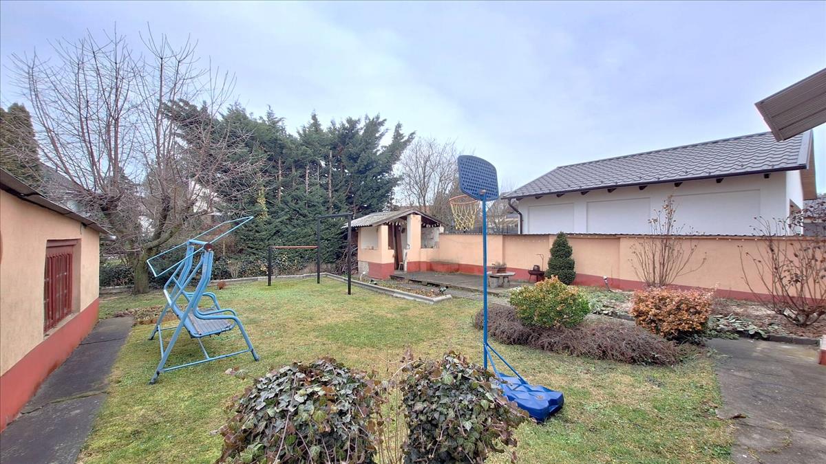 A telken egy különálló kétállásos garázs kapott helyet. a kert parkosított, gondozott, a növények vízellátását pedig fúrt kút biztosítja.