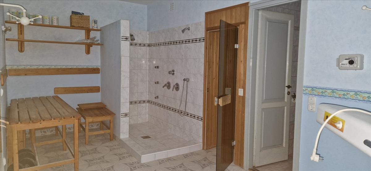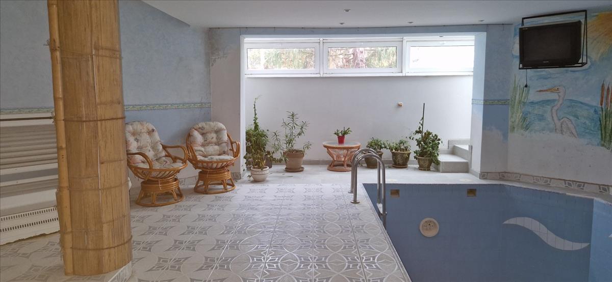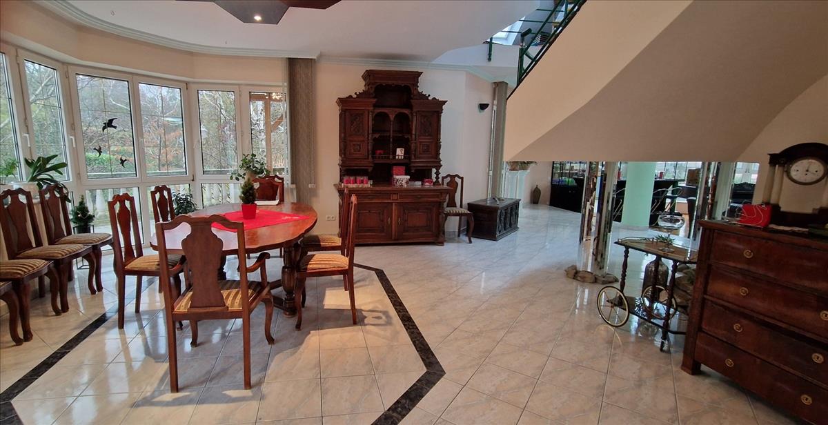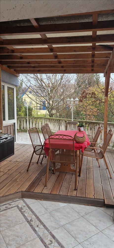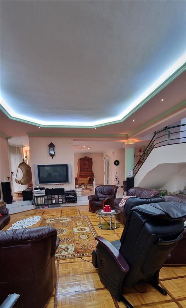 Az épület a 90-es években épült Ytong falazóelemekkel, külső nemesvakolattal borítva. a többszintes családiházban borospince, vizforgatós medence, szauna, és szolárium is helyet kapott. a hatalmas nappali a konyhával egybeépítve, de mégis a konyha külön részegységet képezve helyezkedik el.