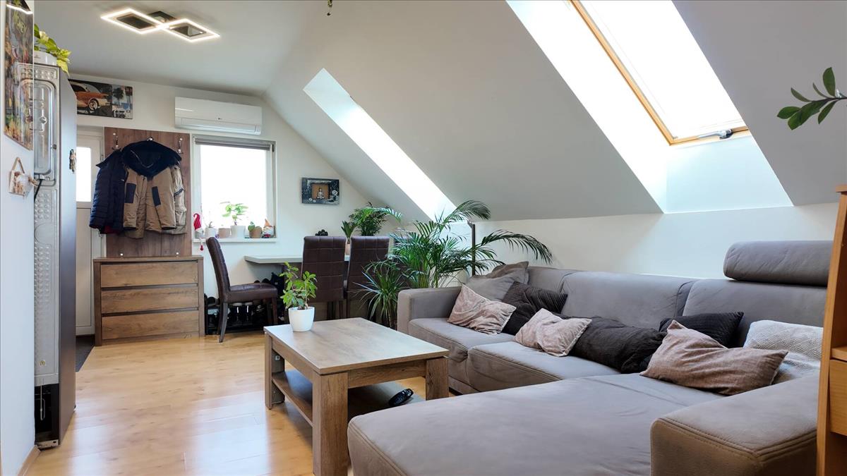 Felső szint: 60 m²-es, 2 szobás, nappali-konyhás lakás, 36 m² panorámás terasszal