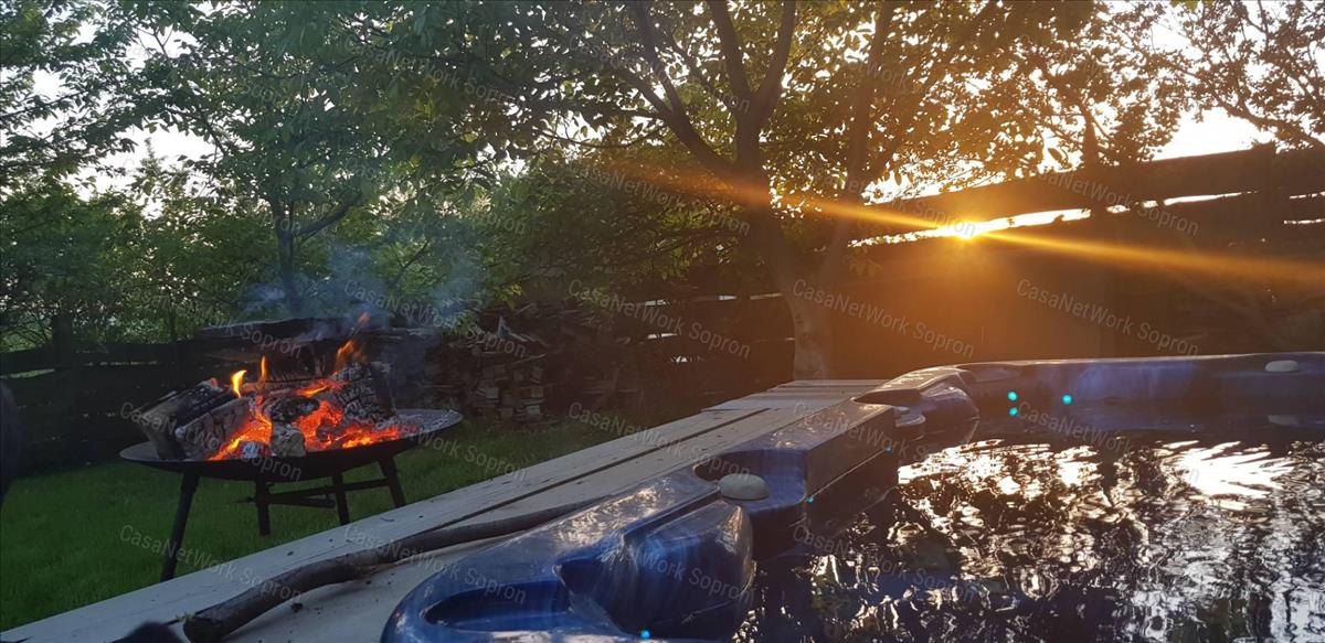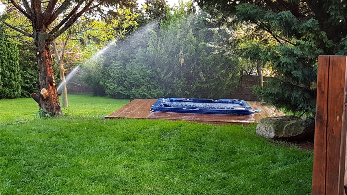 kerti jakuzzival, 899 m2 parkosított szép udvarral, nagy fákkal.