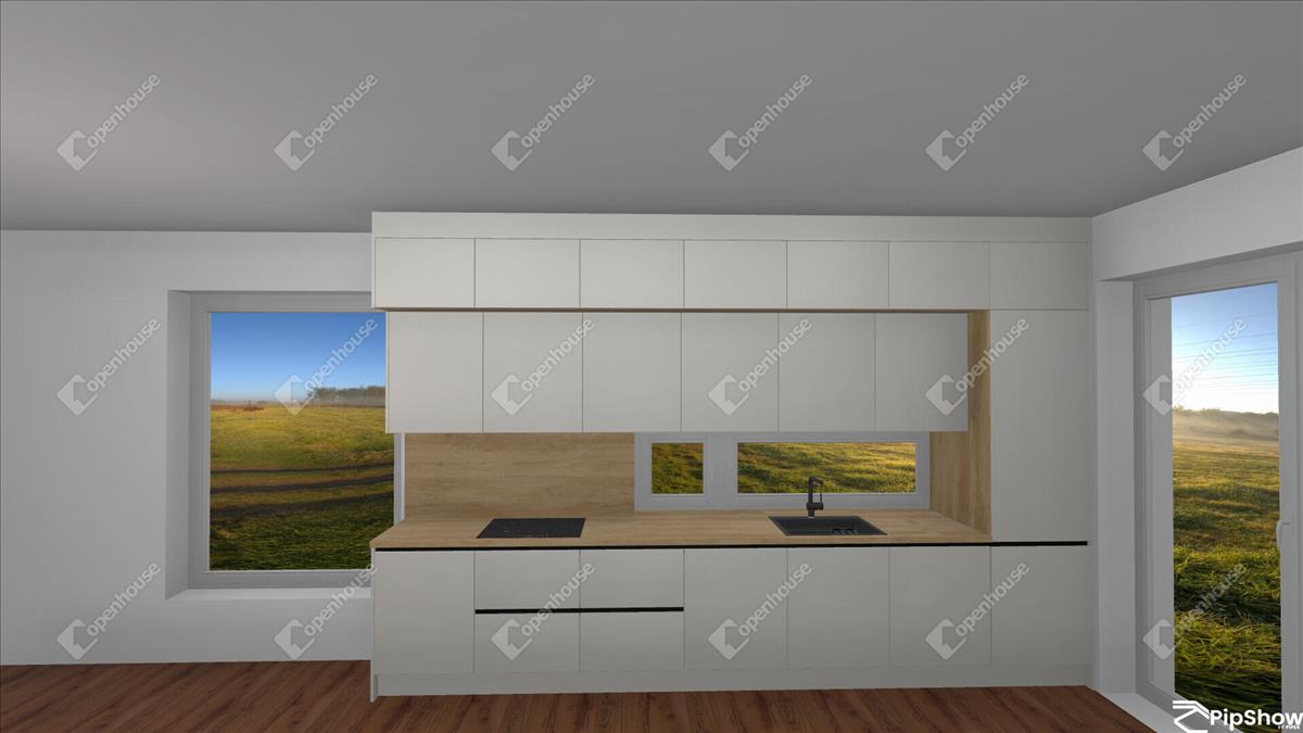 A konyhabútor igény szerint, látványterv alapján választható, így a belső tér teljes mértékben az új tulajdonos stílusához alakítható.