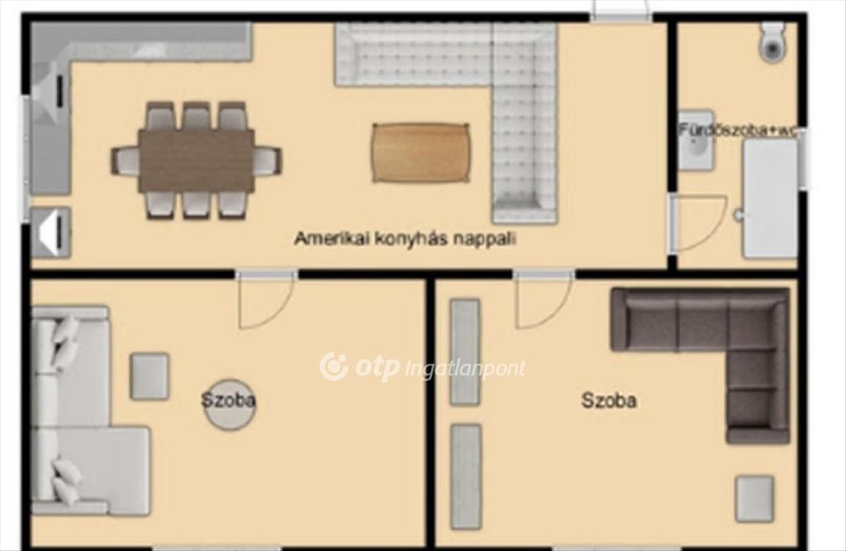 -a világos beltérben :2 szoba, amerikai konyhás nappali, és fürdőszoba+wc került kialakításra.