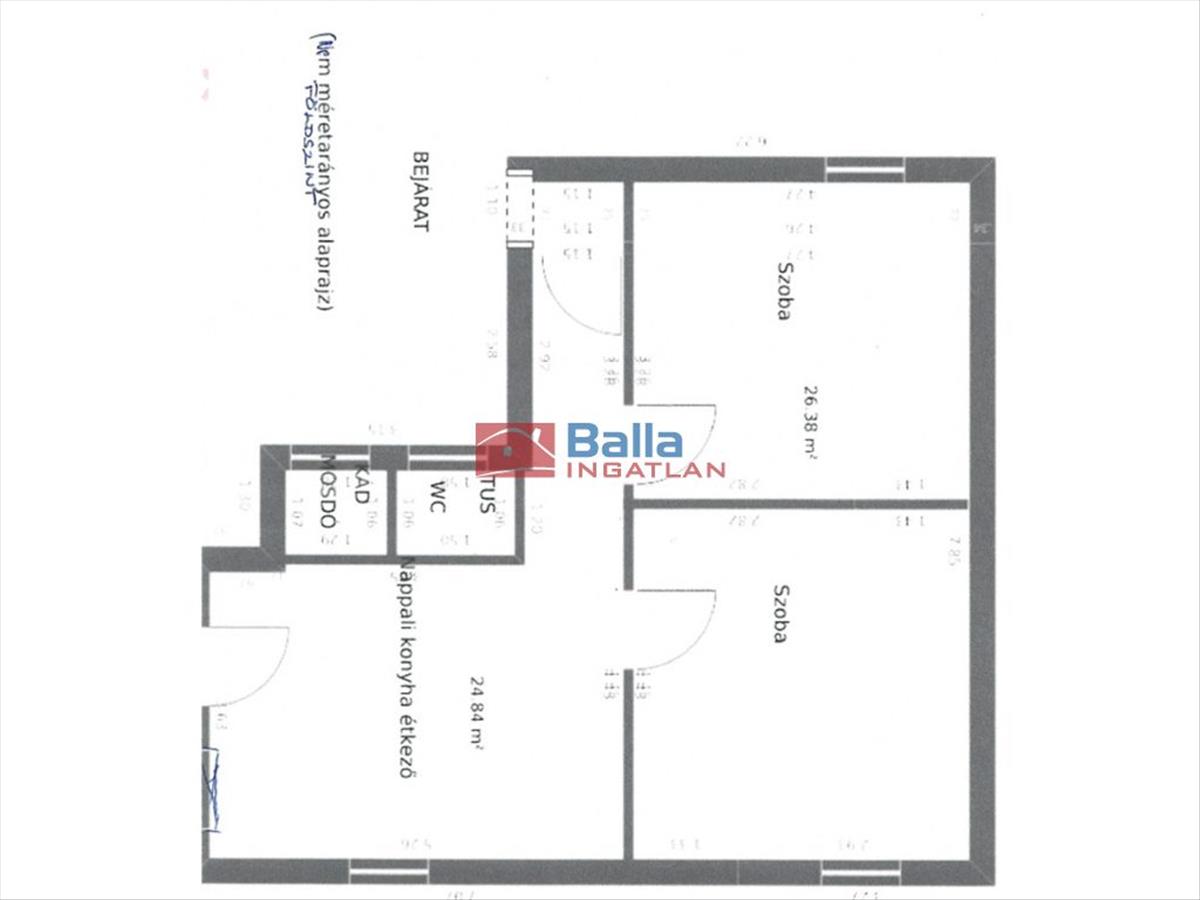 22 m2 amerikai konyhás nappali, 2 szoba, folyosó, lépcsőház, kádas fürdőszoba, tusoló + Wc, 17. 2 m2 terasz.