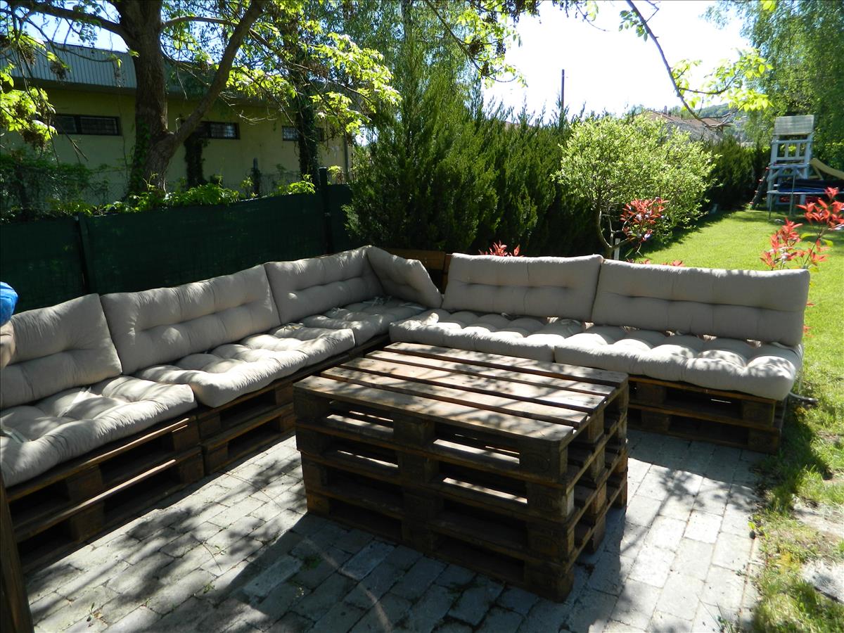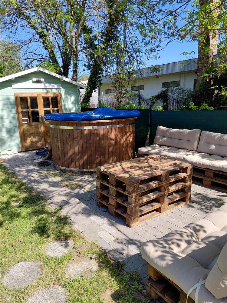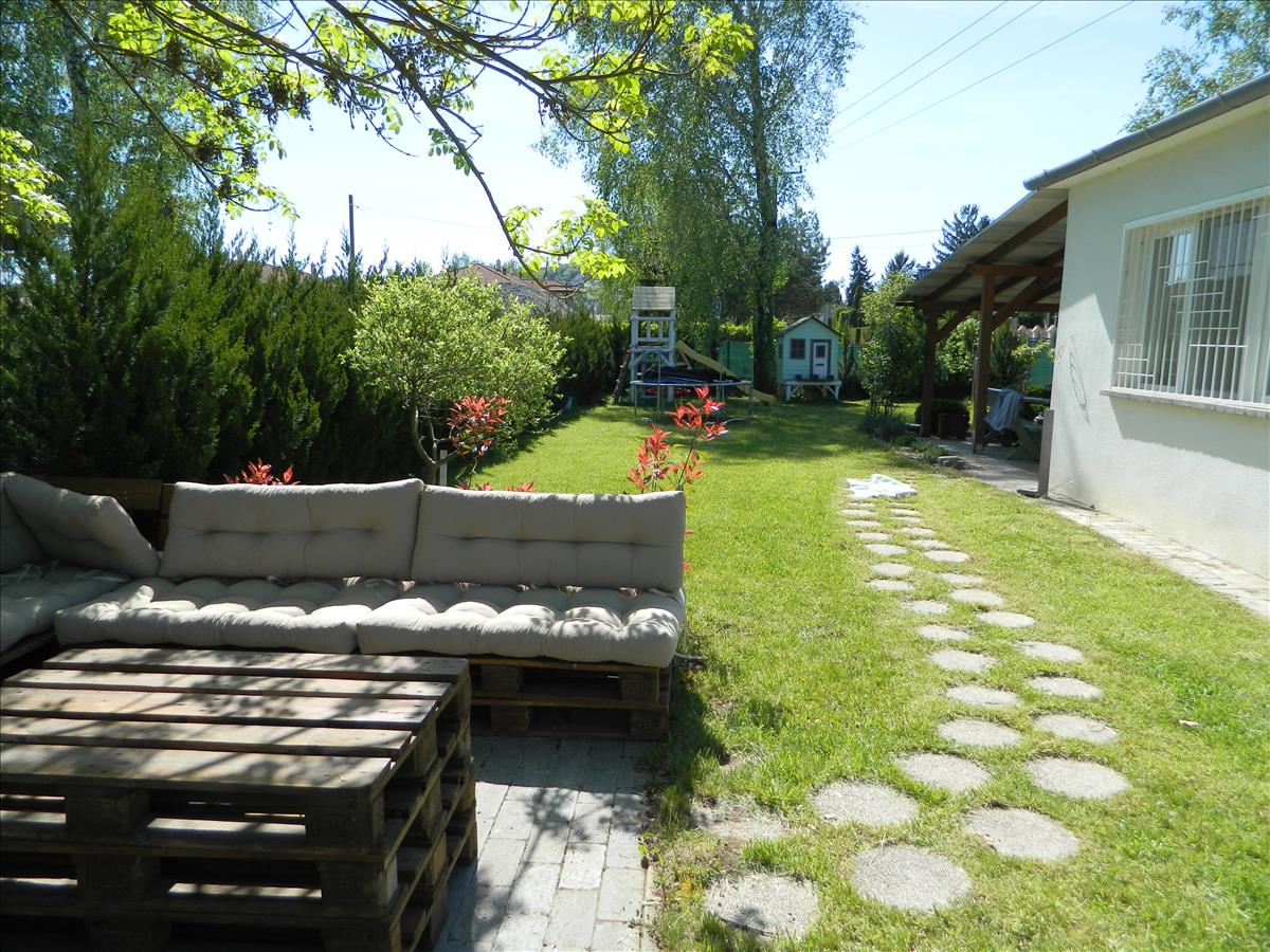 A főépület mellett 2 db 10 m2-es faház is található a telken, az egyik a kerti szerszámok tárolására szolgál, a másik szaunaként működik. a szauna épülete előtti térkövezett részben pihenő rész került kialakításra.