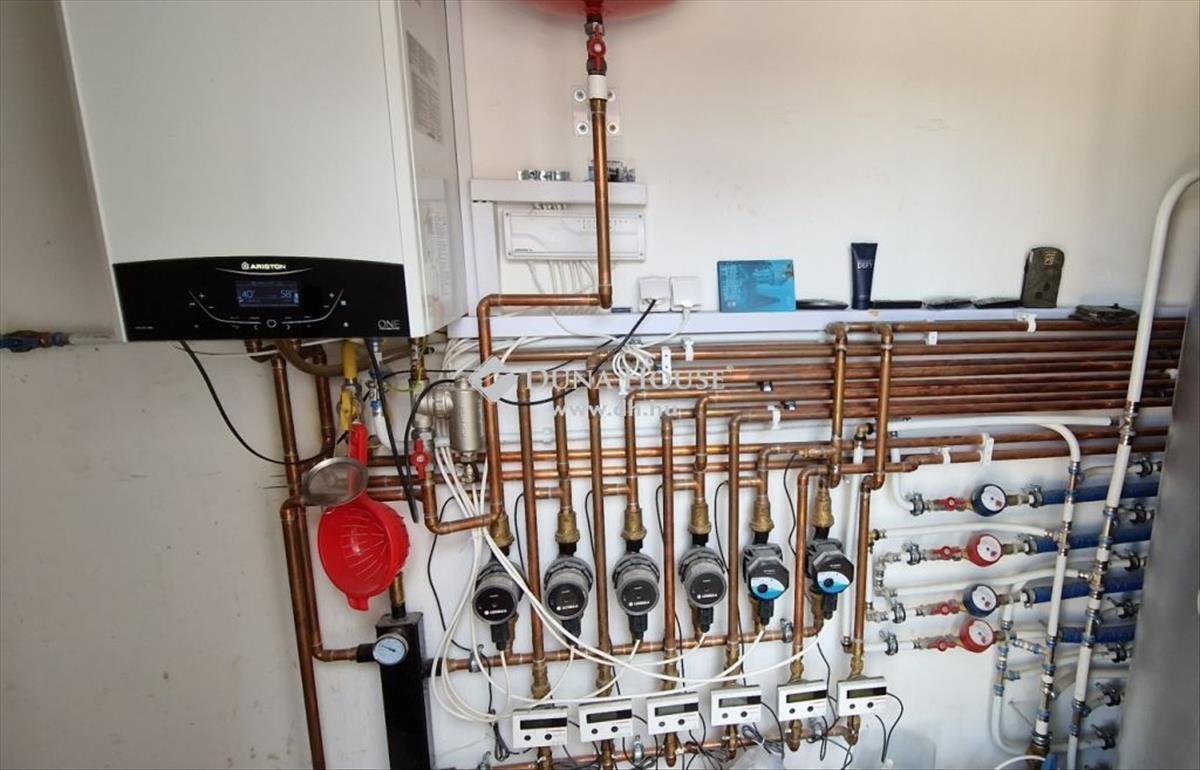 38-as tégla falazat 10 cm külső homlokzati szigetelés, beton födém, szigetelt tető, Antracit cserép fedés, álmennyezeti Hőszigetelés, külső lábazati és belső lépésálló padló szigetelés fűtésrendszer gáz Czirkó Padlófűtés 500 l-es puffertartály 1 főmérő lakásonként 6 almérő.