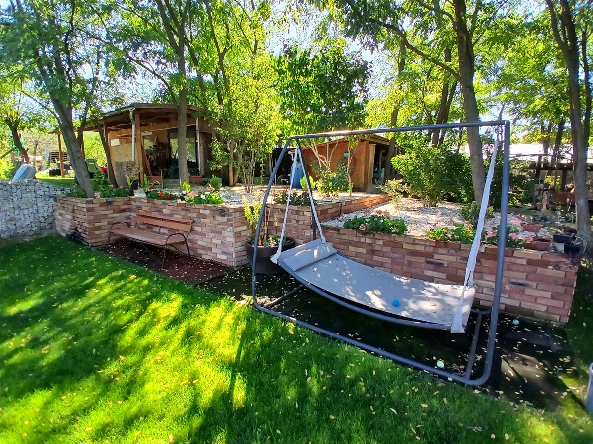 Kertben szalettli és kert sütögető, tároló kialakítva.