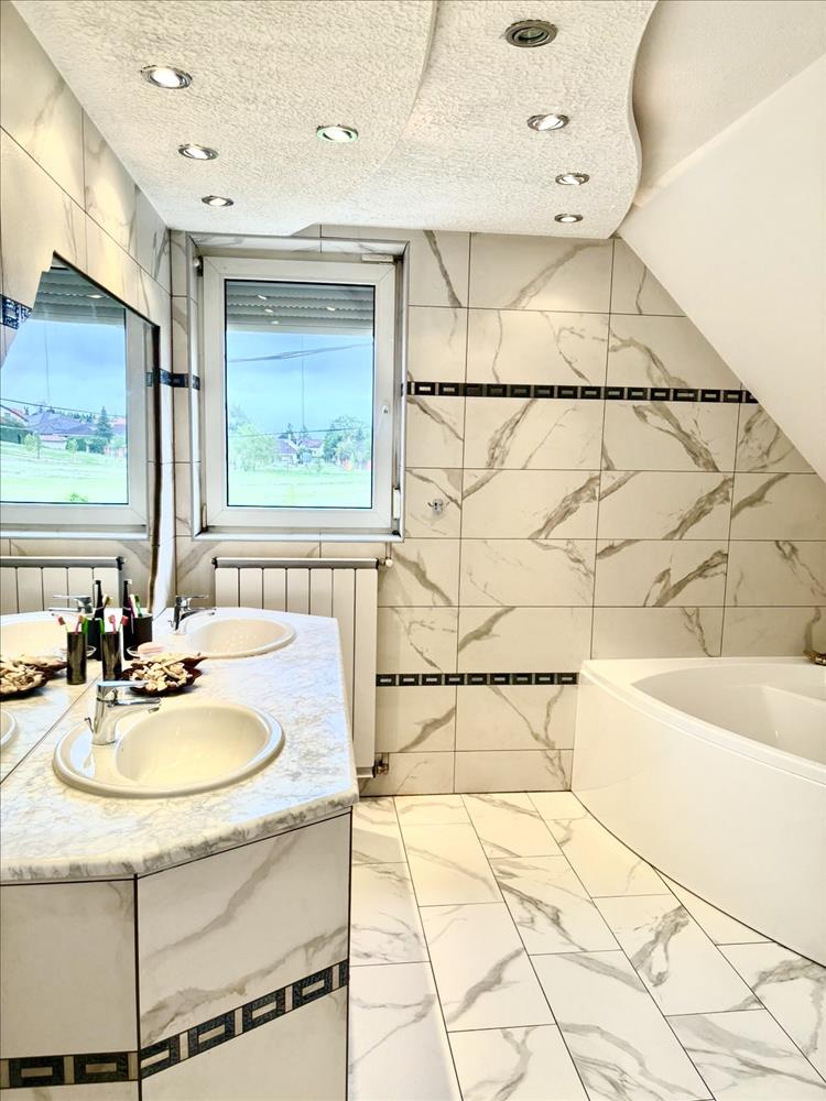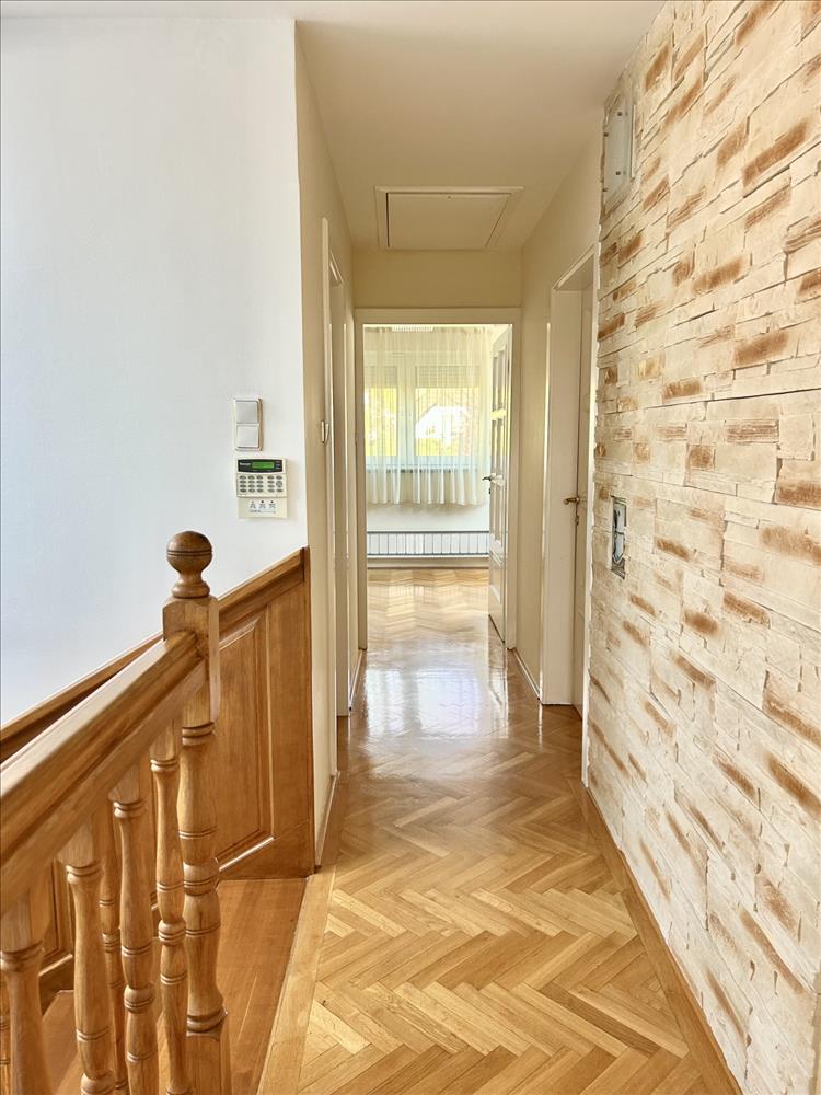 Az emeleti részen helyezkedik el két tágas hálószoba, egy félszoba, gardróbszoba,