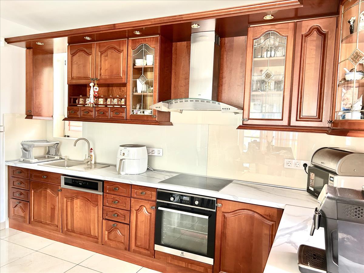 - a szobák burkolata lakkozott fa parketta. a konyhaszekrény és a beépített szekrények cseresznyefából készültek. a beltéri ajtók és a lépcső tölgyfából.