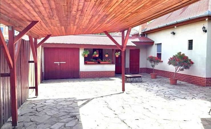 A gondozott kert, a 12 m²-es fedett terasz, valamint az automata öntözőrendszer és az ásott kút házi vízművel ideális pihenést és kényelmet nyújt. Az autós kényelmet garázs és fedett kocsibeálló szolgálja, az automata kapu fűtött vezetősínnel télen is megbízhatóan működik.