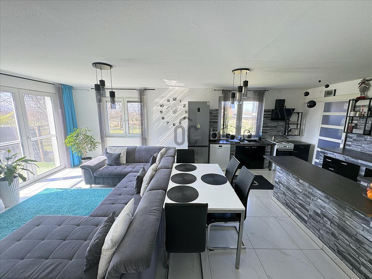 + a ház ékköve a hatalmas nappali-étkező, ami rendkívül világos és még egy 30nm -es terasz kapcsolattal is rendelkezik.