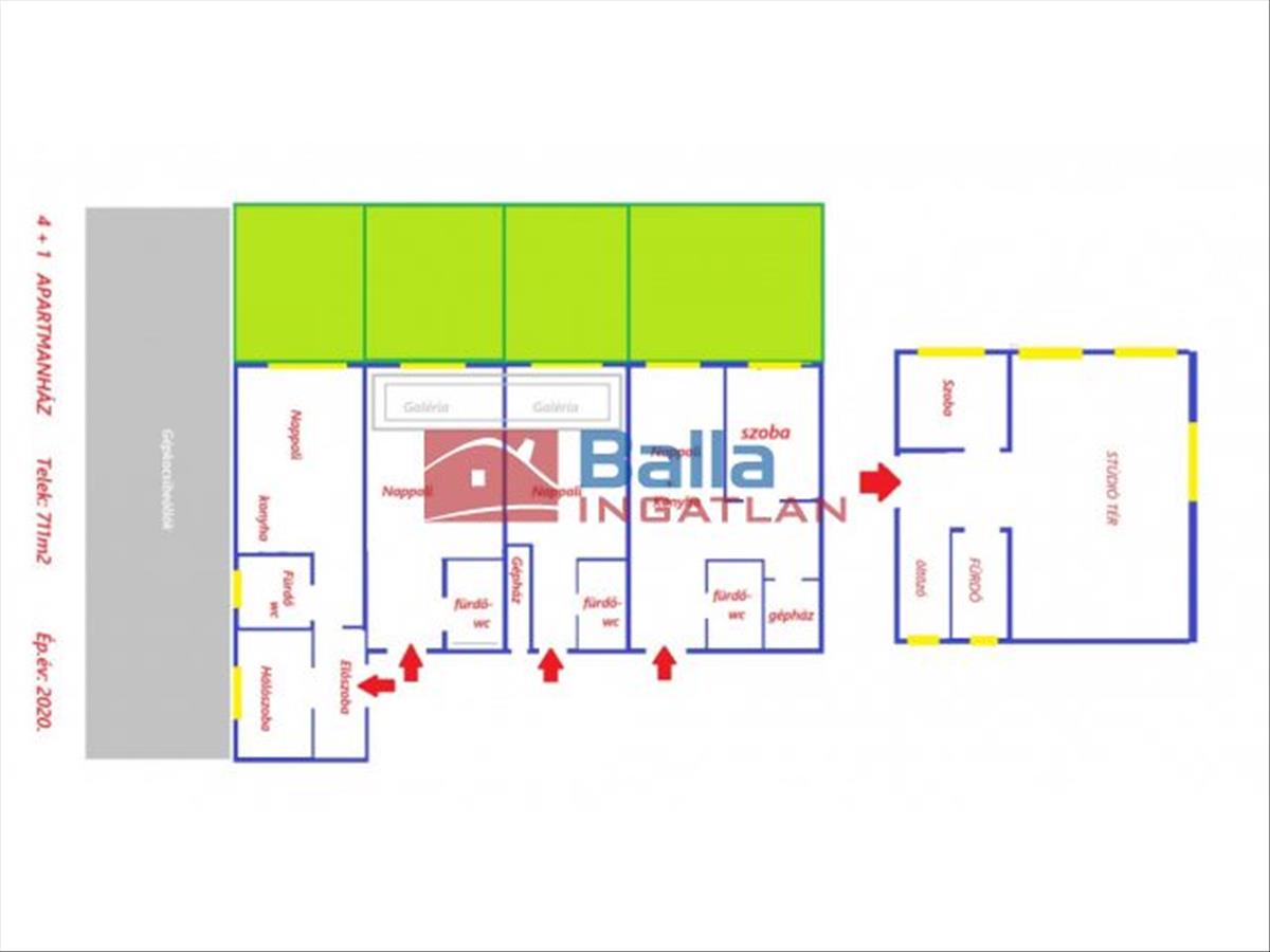 Egy telken 4 + 1= 5* önálló apartman, stabil, hosszútávú bérlőkkel.