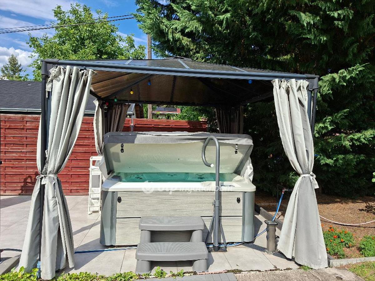 Rendezett szép kert, ahol egy jakuzzit is találunk- wellness nap? Bármikor.