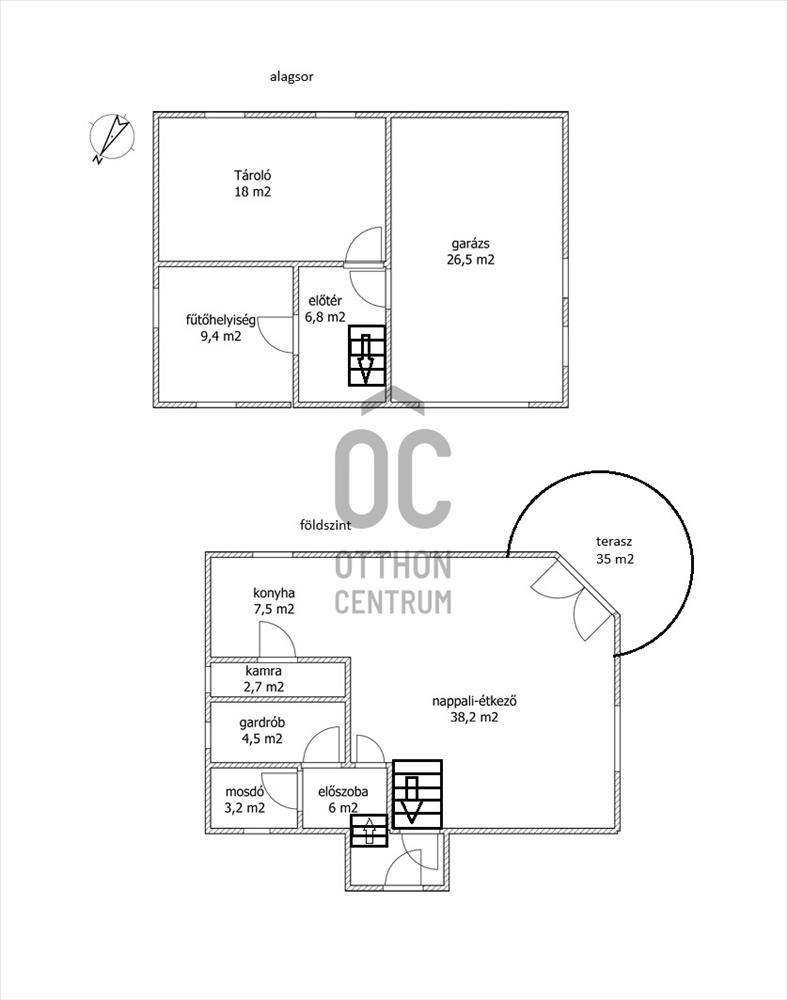 A földszinten tágas, világos amerikai konyhás nappali található, közvetlen teraszkapcsolattal. a 35 m²-es terasz kiváló életteret biztosít családi összejövetelekhez. a fürdők padlófűtéssel ellátottak.