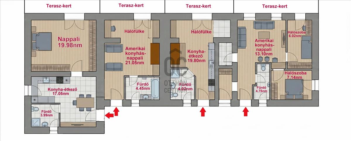 + Mindegyik lakrész saját terasz kapcsolatos, teljesen felszerelt és berendezett, ami a vételár részét képezi.